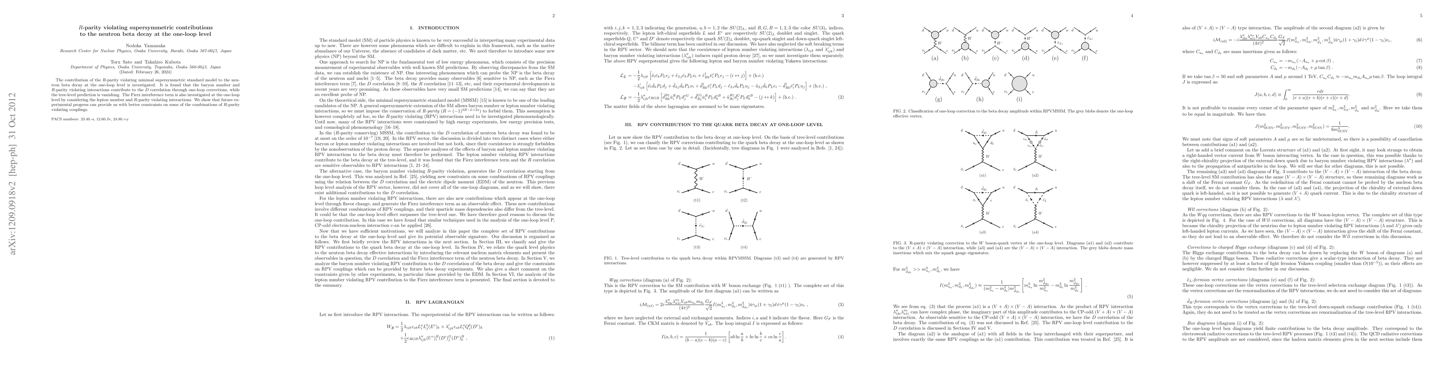 This paper investigates R-parity violating supersymmetric contributions to neutron beta decay at the one-loop level, finding that these interactions affect the D correlation. Future experimental advancements may yield tighter constraints on specific R-parity violating coupling combinations.