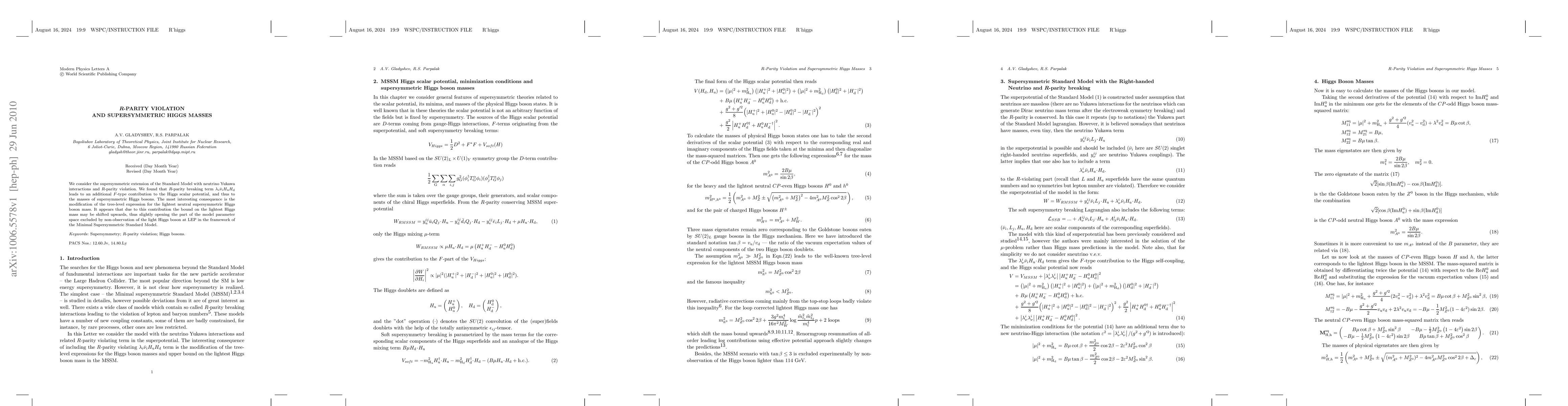 This paper explores the supersymmetric Standard Model with R-parity violation, finding that the term \lambda \nu H_u H_d adds an F-type contribution to the Higgs potential, modifying the mass of the lightest neutral Higgs boson and potentially shifting the upper bound on its mass, which could reopen some excluded parameter spaces in the Minimal Supersymmetric Standard Model.