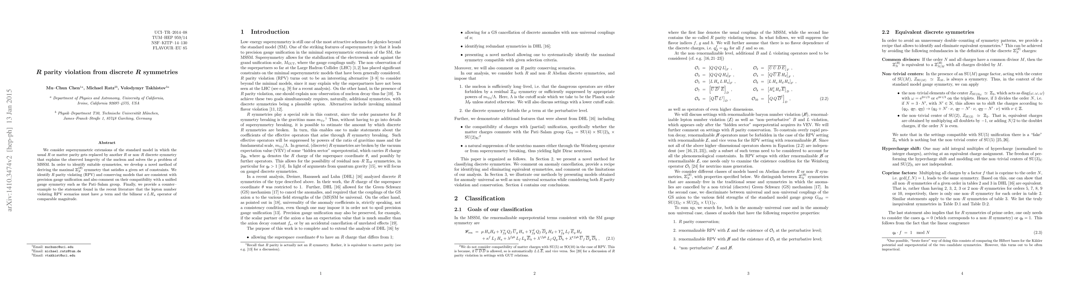 We consider supersymmetric extensions of the standard model in which the usual $R$ or matter parity gets replaced by another $R$ or non-$R$ discrete symmetry that explains the observed longevity of the nucleon and solves the $\mu$ problem of MSSM. In order to identify suitable symmetries, we develop a novel method of deriving the maximal $\mathbb{Z}_{N}^{(R)}$ symmetry that satisfies a given set of constraints. We identify $R$ parity violating (RPV) and conserving models that are consistent with precision gauge unification and also comment on their compatibility with a unified gauge symmetry such as the Pati-Salam group. Finally, we provide a counter-example to the statement found in the recent literature that the lepton number violating RPV scenarios must have $\mu$ term and the bilinear $\kappa \, L \, H_u$ operator of comparable magnitude.