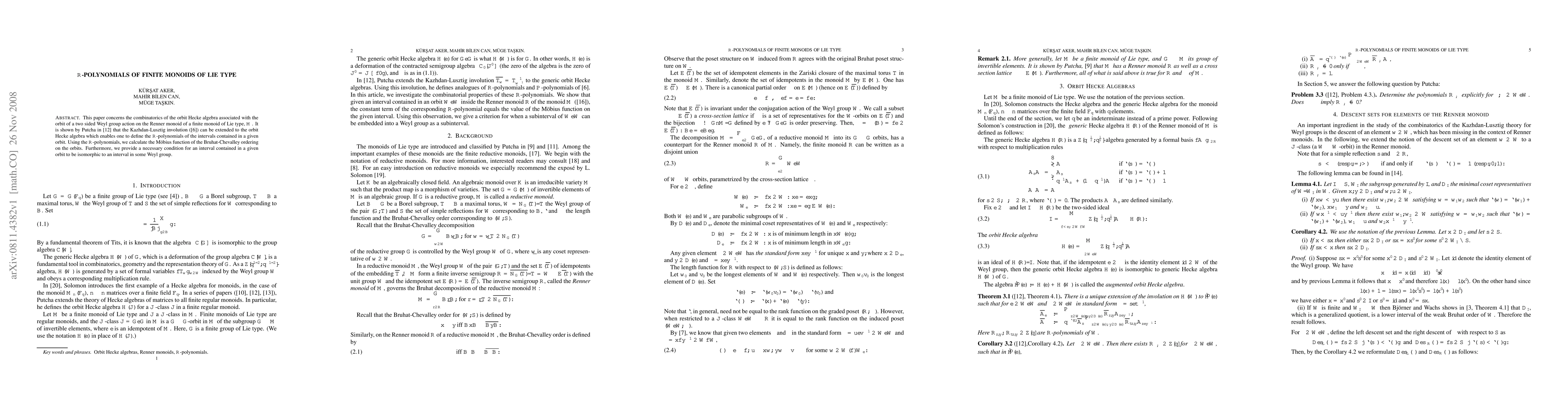 This paper concerns the combinatorics of the orbit Hecke algebra associated with the orbit of a two sided Weyl group action on the Renner monoid of a finite monoid of Lie type, $M$. It is shown by Putcha in \cite{Putcha97} that the Kazhdan-Lusztig involution (\cite{KL79}) can be extended to the orbit Hecke algebra which enables one to define the $R$-polynomials of the intervals contained in a given orbit. Using the $R$-polynomials, we calculate the M\"obius function of the Bruhat-Chevalley ordering on the orbits. Furthermore, we provide a necessary condition for an interval contained in a given orbit to be isomorphic to an interval in some Weyl group.