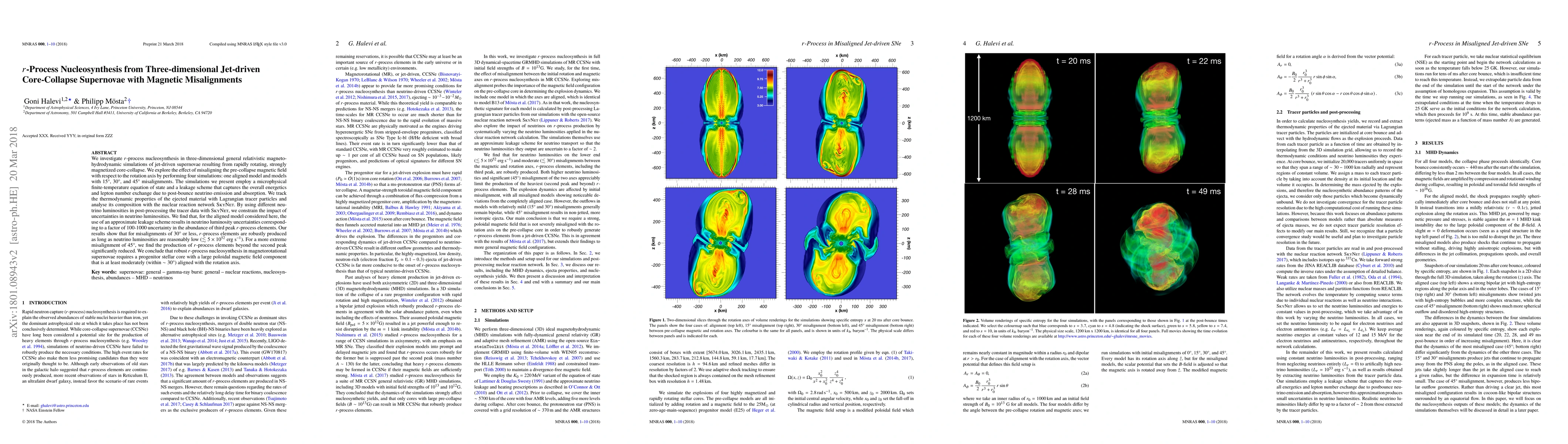 This paper examines $r$-process nucleosynthesis in 3D jet-driven supernovae from rapidly rotating, magnetized core-collapse, focusing on the impact of magnetic misalignments. It finds that $r$-process elements are robustly produced for misalignments up to 30 degrees, but production beyond the second peak diminishes with a 45-degree misalignment.