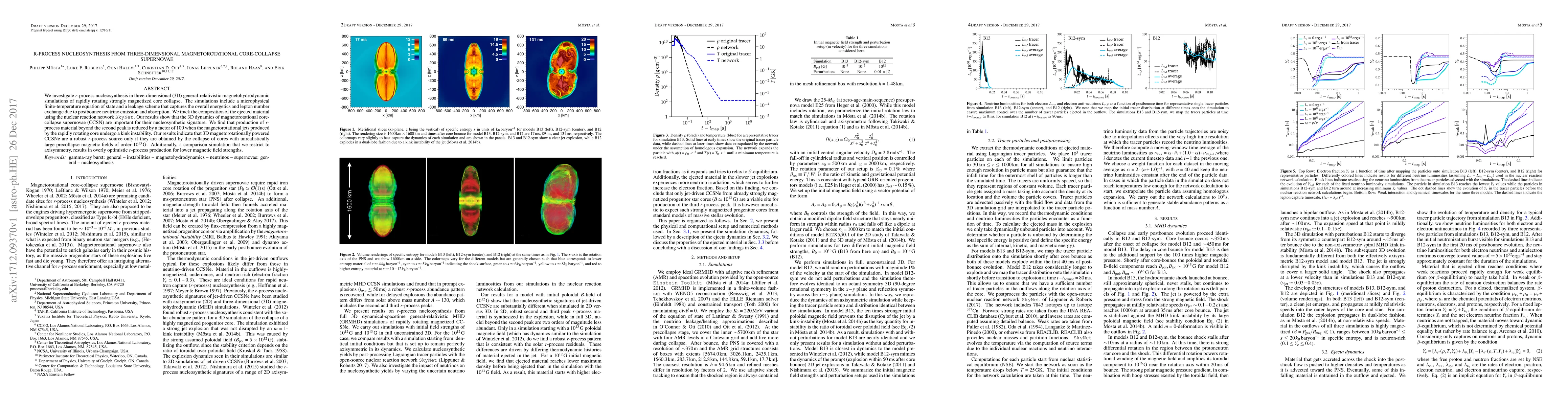This paper examines r-process nucleosynthesis in three-dimensional simulations of rapidly rotating, strongly magnetized core-collapse supernovae, revealing that 3D dynamics significantly affect nucleosynthetic outcomes. The study finds that r-process production beyond the second peak is drastically reduced by magnetorotational jet instabilities, suggesting that only cores with extremely large precollapse magnetic fields can serve as robust r-process sources.