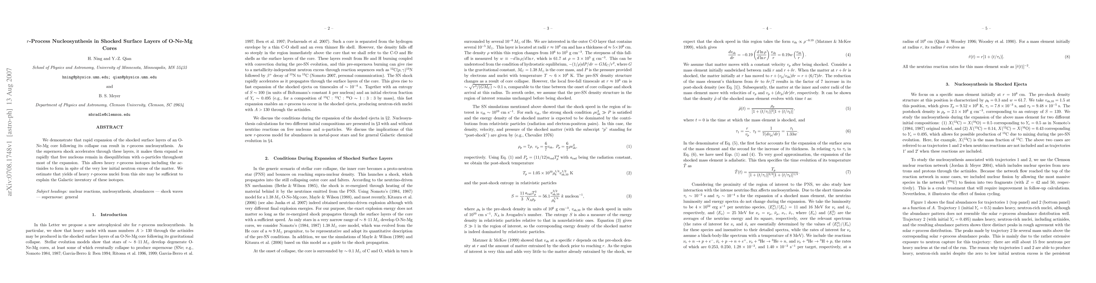 This study shows that rapid expansion of shocked O-Ne-Mg core layers post-collapse can facilitate r-process nucleosynthesis, allowing heavy isotopes, including actinides, to form despite low initial neutron excess. The yields from this site may sufficiently account for the Galactic inventory of heavy r-process nuclei.