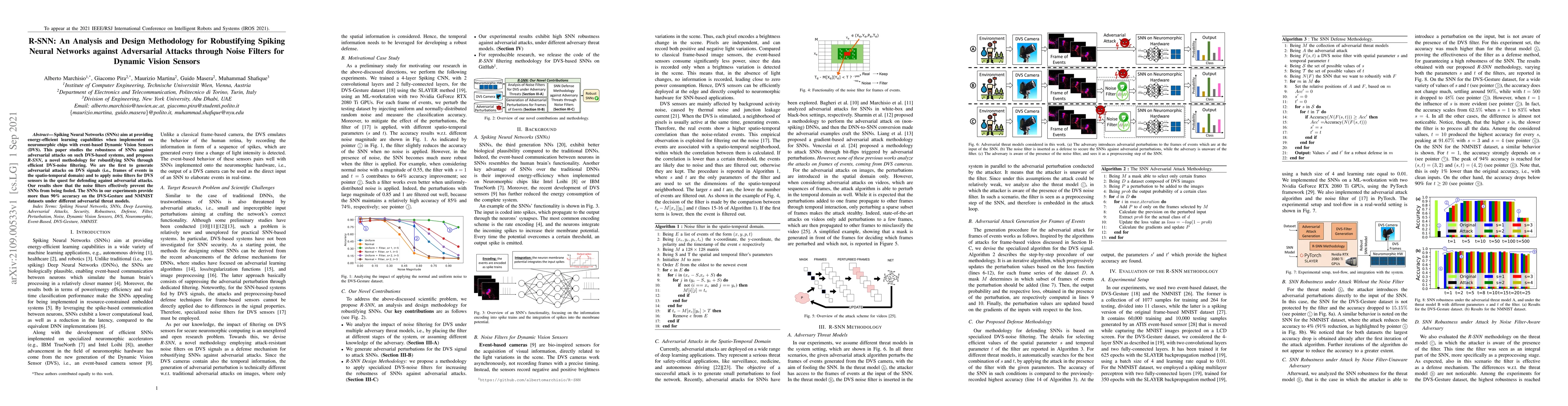 This paper introduces R-SNN, a methodology for fortifying Spiking Neural Networks (SNNs) against adversarial attacks via noise filtering in Dynamic Vision Sensors (DVS). The authors are the first to craft adversarial attacks on DVS signals and employ noise filters to defend against them, achieving over 90% accuracy on DVS-Gesture and NMNIST datasets.