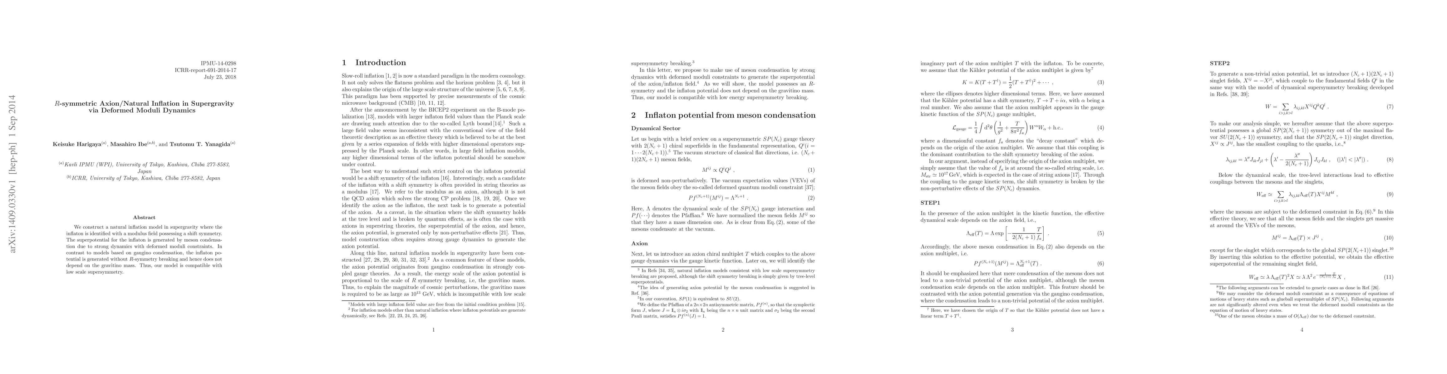 This paper proposes a natural inflation model in supergravity where the inflaton is a modulus field with a shift symmetry, generated by meson condensation from strong dynamics. Unlike models based on gaugino condensation, this model avoids $R$-symmetry breaking, maintaining compatibility with low scale supersymmetry.
