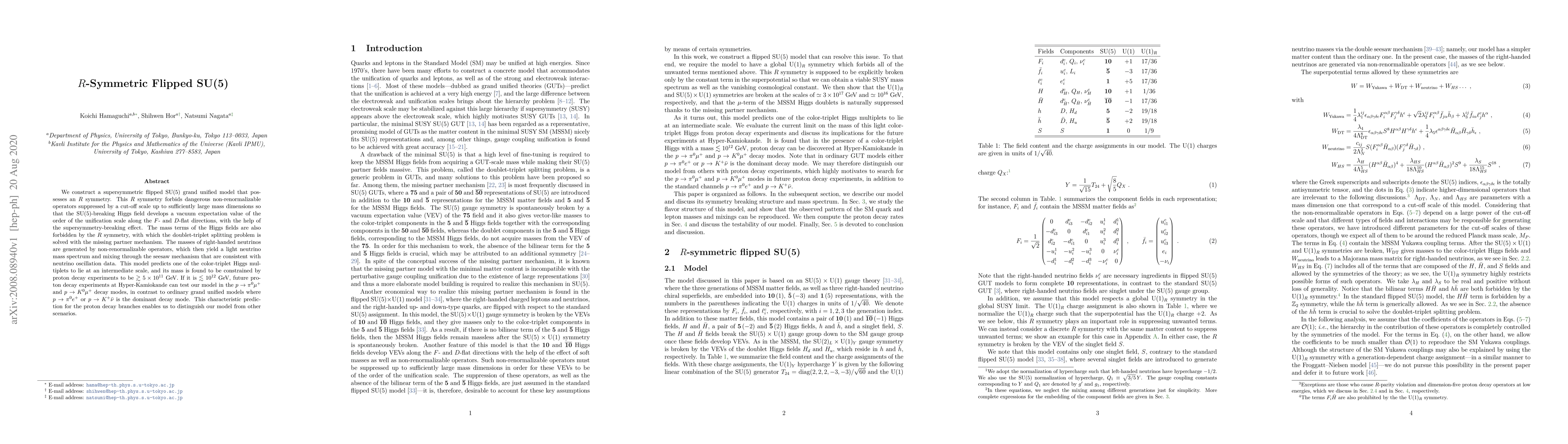 This paper constructs a supersymmetric flipped SU(5) grand unified model with an $R$ symmetry that resolves the doublet-triplet splitting problem and generates a light neutrino mass spectrum via the seesaw mechanism. The model predicts a color-triplet Higgs multiplet at an intermediate scale, with its mass constrained by proton decay experiments, potentially testable by future experiments.