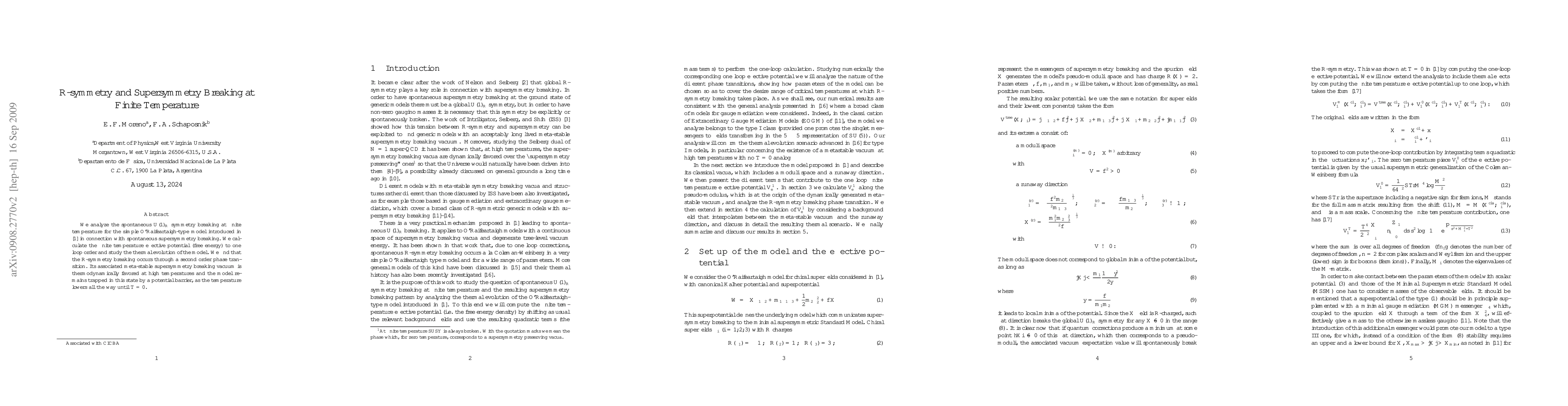 This paper investigates the spontaneous breaking of $U(1)_R$ symmetry at finite temperature in an O'Raifeartaigh-type model linked to supersymmetry breaking. It finds that R-symmetry breaking occurs via a second-order phase transition, with meta-stable supersymmetry breaking favored at high temperatures, and a potential barrier maintaining this state as the temperature decreases to zero.