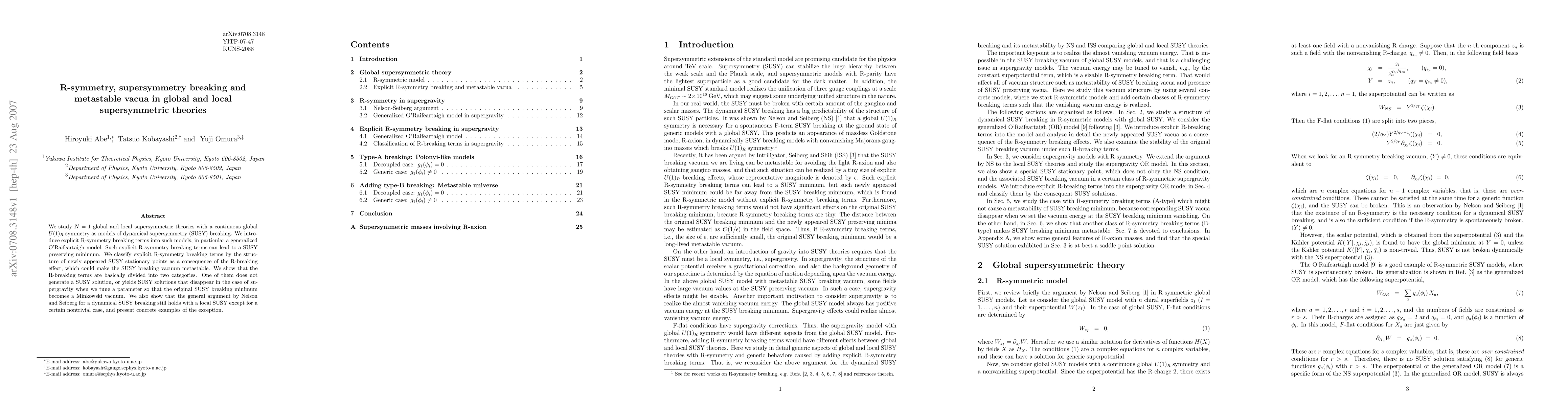 This paper investigates N=1 supersymmetric theories with R-symmetry, focusing on how explicit R-symmetry breaking terms lead to dynamical supersymmetry breaking and the formation of metastable vacua. It classifies these terms based on their impact on supersymmetry solutions and discusses exceptions to the general dynamical SUSY breaking argument in local supersymmetry scenarios.