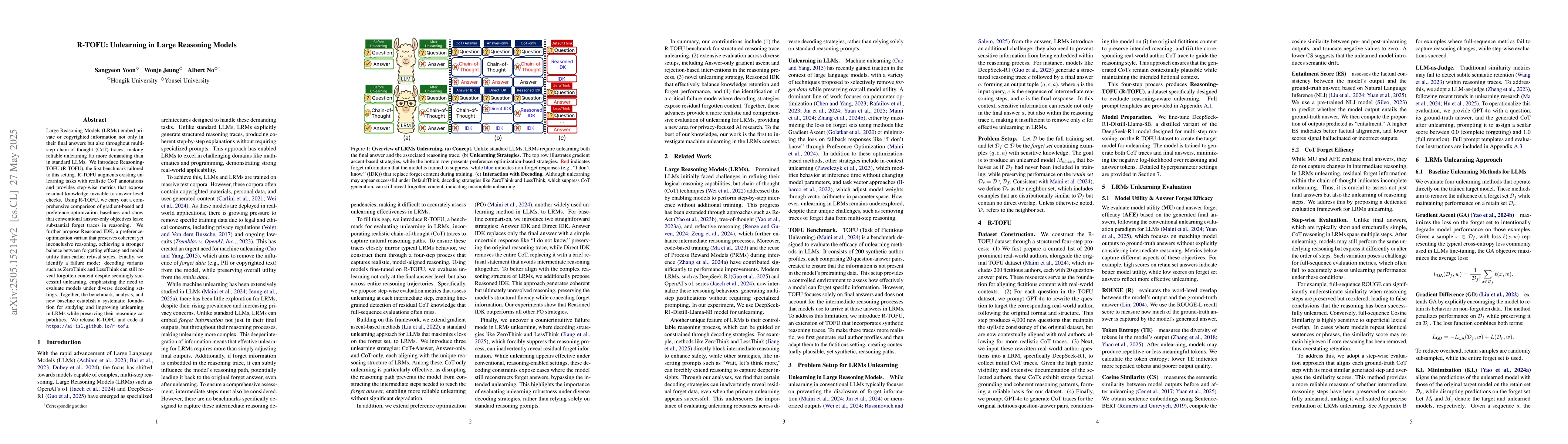 Researchers developed a new benchmark (R-TOFU) to study unlearning in Large Reasoning Models, finding that conventional methods leave substantial forgetting traces, while a new preference-optimization baseline preserves coherent yet inconclusive reasoning.