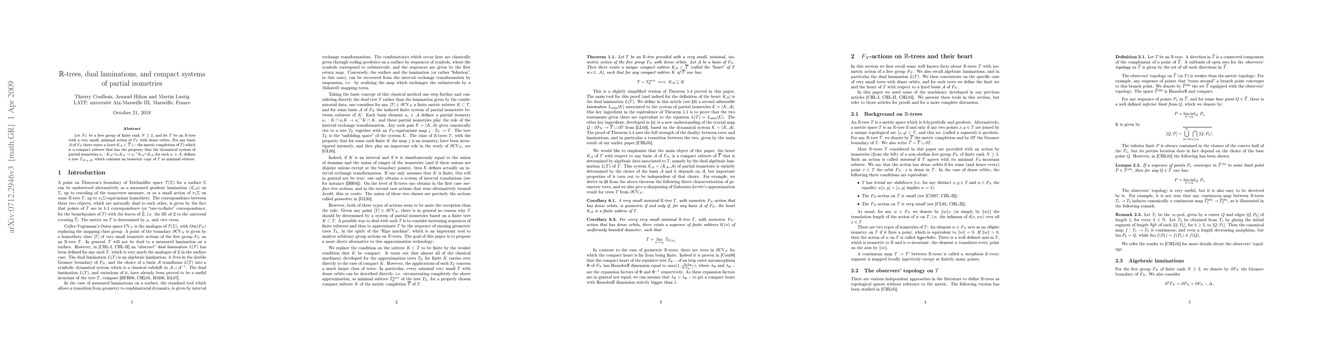 Let $\FN$ be a free group of finite rank $N \geq 2$, and let $T$ be an $\R$-tree with a very small, minimal action of $\FN$ with dense orbits. For any basis $\CA$ of $\FN$ there exists a {\em heart} $K_{\CA} \subset \bar T$ (= the metric completion of $T$) which is a compact subtree that has the property that the dynamical system of partial isometries $a_{i} : K_{\CA} \cap a_{i} K_{\CA} \to a_{i}\inv K_{\CA} \cap K_{\CA}$, for each $a_{i} \in \CA$, defines a tree $T_{(K_{\CA}, \CA)}$ which contains an isometric copy of $T$ as minimal subtree.