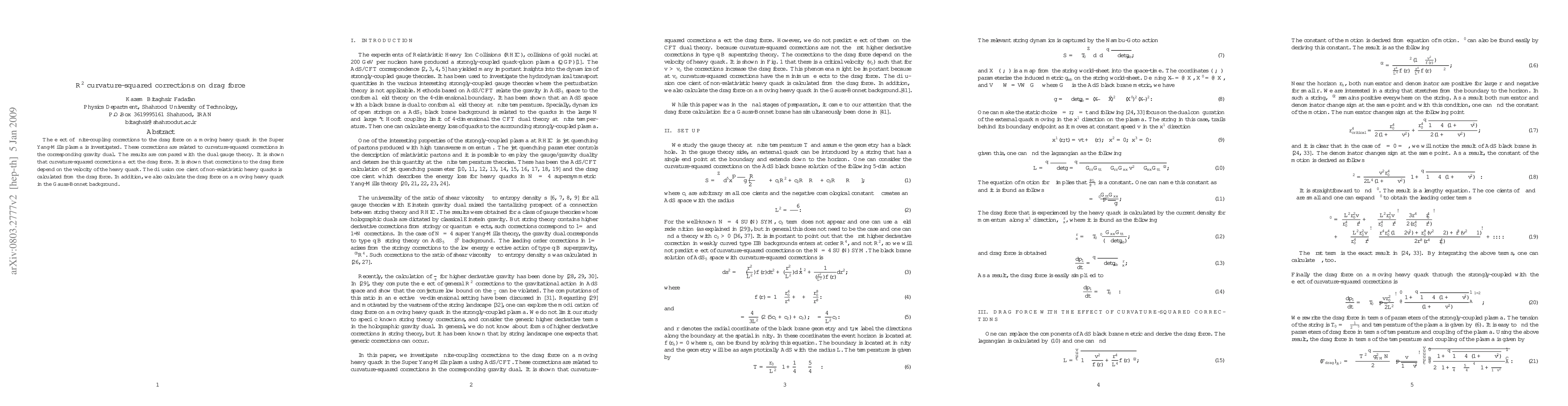 This paper investigates finite-coupling corrections to the drag force on a moving heavy quark in a Super Yang-Mills plasma, linking these corrections to curvature-squared terms in the gravity dual. It shows that these corrections depend on the quark's velocity and calculates the diffusion coefficient from the drag force.