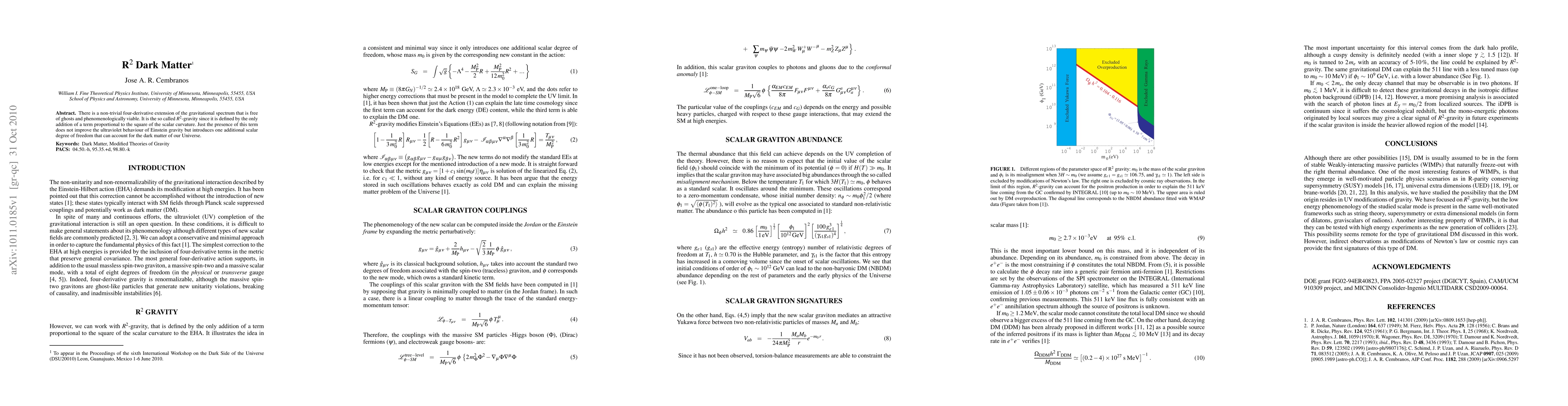 There is a non-trivial four-derivative extension of the gravitational spectrum that is free of ghosts and phenomenologically viable. It is the so called $R^2$-gravity since it is defined by the only addition of a term proportional to the square of the scalar curvature. Just the presence of this term does not improve the ultraviolet behaviour of Einstein gravity but introduces one additional scalar degree of freedom that can account for the dark matter of our Universe.