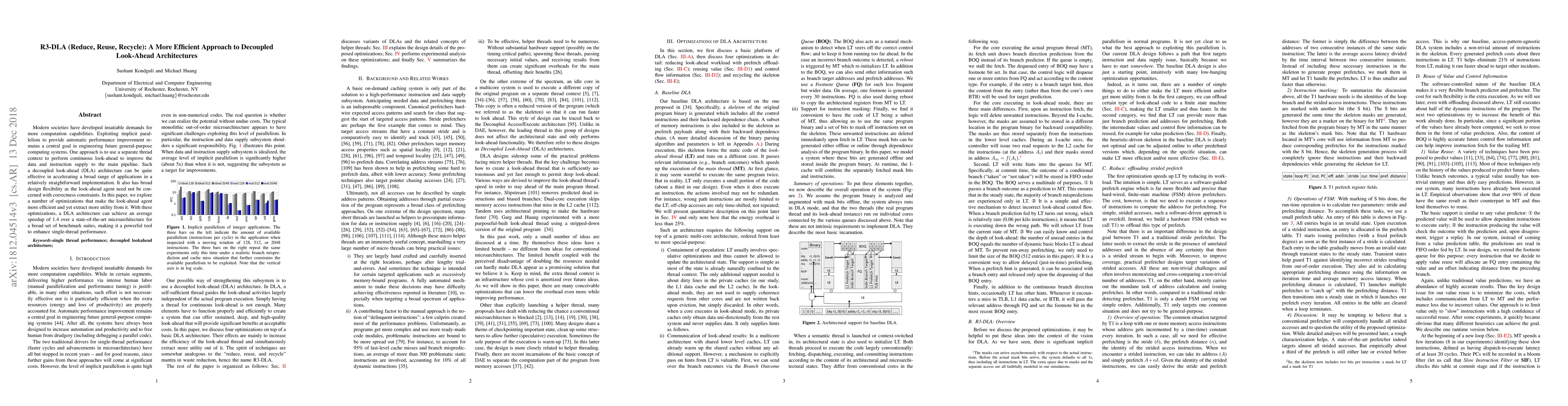 This paper proposes optimizations for decoupled look-ahead (DLA) architectures to enhance computational efficiency and performance. The R3-DLA approach achieves an average speedup of 1.4 over existing microarchitectures, demonstrating its effectiveness in improving single-thread performance.