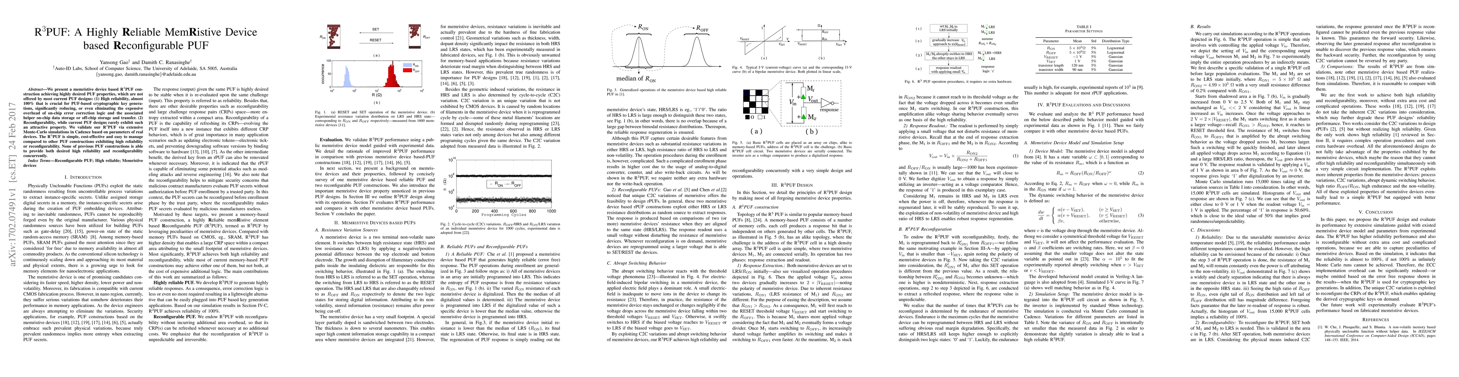 The paper introduces R$^3$PUF, a memristive device-based PUF that offers high reliability (nearly 100%) and reconfigurability, features not commonly found in existing PUF designs. This innovation reduces the need for costly error correction and data storage, making it simple, cost-effective, and efficient.