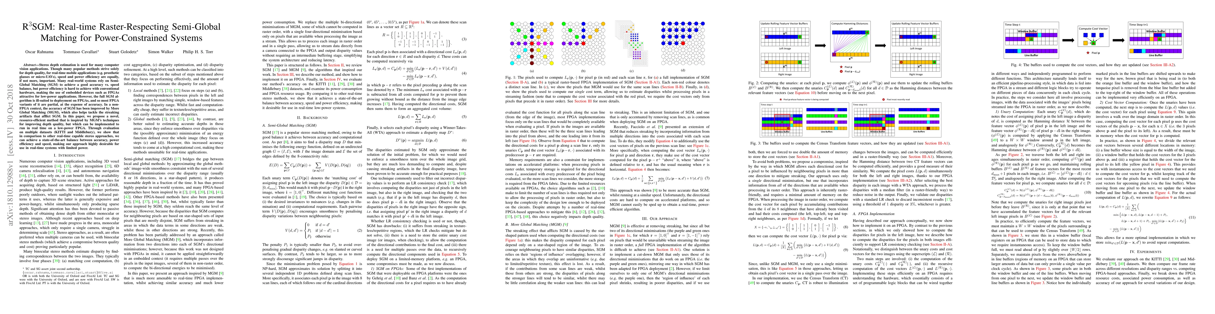 This paper proposes R$^3$SGM, a real-time, raster-respecting Semi-Global Matching method for power-constrained systems, inspired by More Global Matching techniques to enhance depth quality while maintaining real-time performance on low-power FPGAs. Evaluations demonstrate superior accuracy, power efficiency, and speed compared to other real-time stereo depth estimation methods.