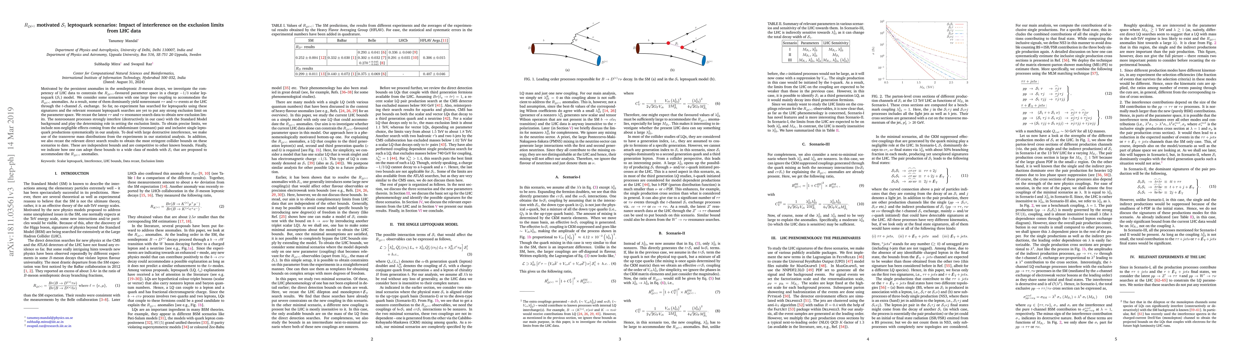 Motivated by the persistent anomalies in the semileptonic $B$-meson decays, we investigate the competency of LHC data to constrain the $R_{D^{(*)}}$-favoured parameter space in a charge $-1/3$ scalar leptoquark ($\mathcal S_1$) model. We consider some scenarios with one large free coupling to accommodate the $R_{D^{(*)}}$ anomalies. As a result, some of them dominantly yield nonresonant $\tau\tau$ and $\tau\nu$ events at the LHC through the $t$-channel $\mathcal S_1$ exchange. So far, no experiment has searched for leptoquarks using these signatures and the relevant resonant leptoquark searches are yet to put any strong exclusion limit on the parameter space. We recast the latest $\tau\tau$ and $\tau\nu$ resonance search data to obtain new exclusion limits. The nonresonant processes strongly interfere (destructively in our case) with the Standard Model background and play the determining role in setting the exclusion limits. To obtain precise limits, we include non-negligible effects coming from the subdominant (resonant) pair and inclusive single leptoquark productions systematically in our analysis. To deal with large destructive interference, we make use of the transverse mass distributions from the experiments in our statistical analysis. In addition, we also recast the relevant direct search results to obtain the most stringent collider bounds on these scenarios to date. These are independent bounds and are competitive to other known bounds. Finally, we indicate how one can adopt these bounds to a wide class of models with $\mathcal S_1$ that are proposed to accommodate the $R_{D^{(*)}}$ anomalies.