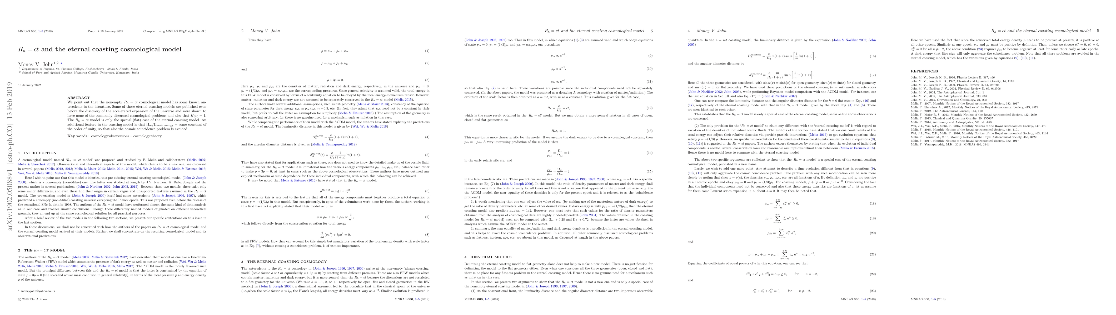 We point out that the nonempty $R_h=ct$ cosmological model has some known antecedents in the literature. Some of those eternal coasting models are published even before the discovery of the accelerated expansion of the universe and were shown to have none of the commonly discussed cosmological problems and also that $H_0t_0=1$. The $R_h=ct$ model is only the special (flat) case of the eternal coasting model. An additional feature in the coasting model is that $\Omega_m/\Omega_{dark \; energy}$ = some constant of the order of unity, so that also the cosmic coincidence problem is avoided.