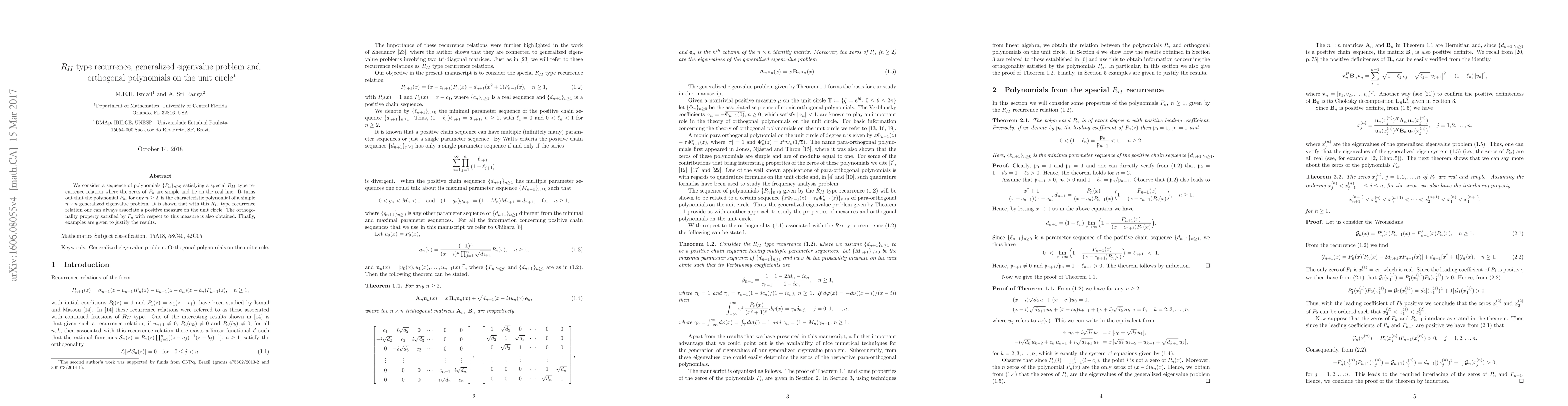 This paper explores a sequence of polynomials satisfying an $R_{II}$ type recurrence relation, demonstrating that these polynomials are characteristic of generalized eigenvalue problems and can be associated with a positive measure on the unit circle. It also establishes the orthogonality of these polynomials with respect to this measure, supported by illustrative examples.