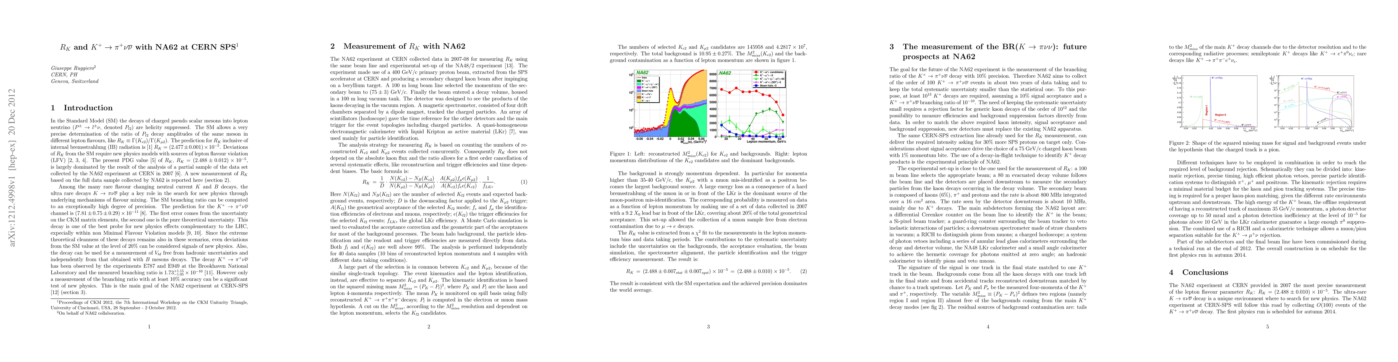 The NA62 experiment at CERN SPS has measured the ratio $R_K$ of $K^+\rightarrow e^\pm\nu$ and $K^+\rightarrow \mu^\pm\nu$ decay rates with high precision, confirming Standard Model predictions. The NA62 aims to observe around 100 ultra-rare $K^+\rightarrow\pi^+\nu\bar{\nu}$ decays over two years, providing a clean test for new physics.