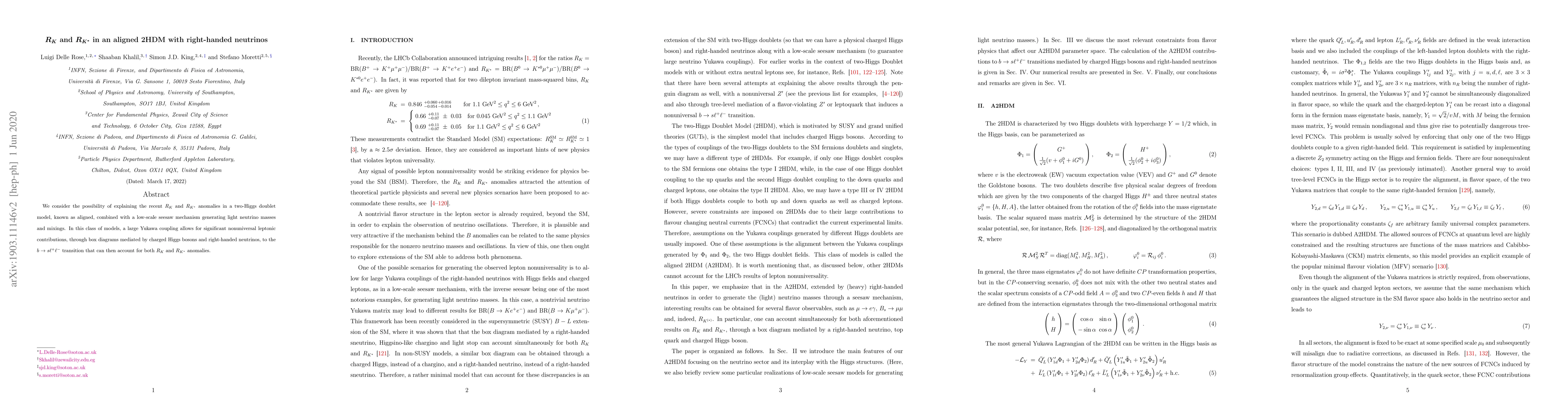 This paper explores how an Aligned 2-Higgs Doublet Model with right-handed neutrinos can explain the $R_K$ and $R_{K^*}$ anomalies via non-universal leptonic contributions from box diagrams involving charged Higgs bosons and right-handed neutrinos. The model allows for significant contributions to the $b \to s \ell^+ \ell^-$ transition.