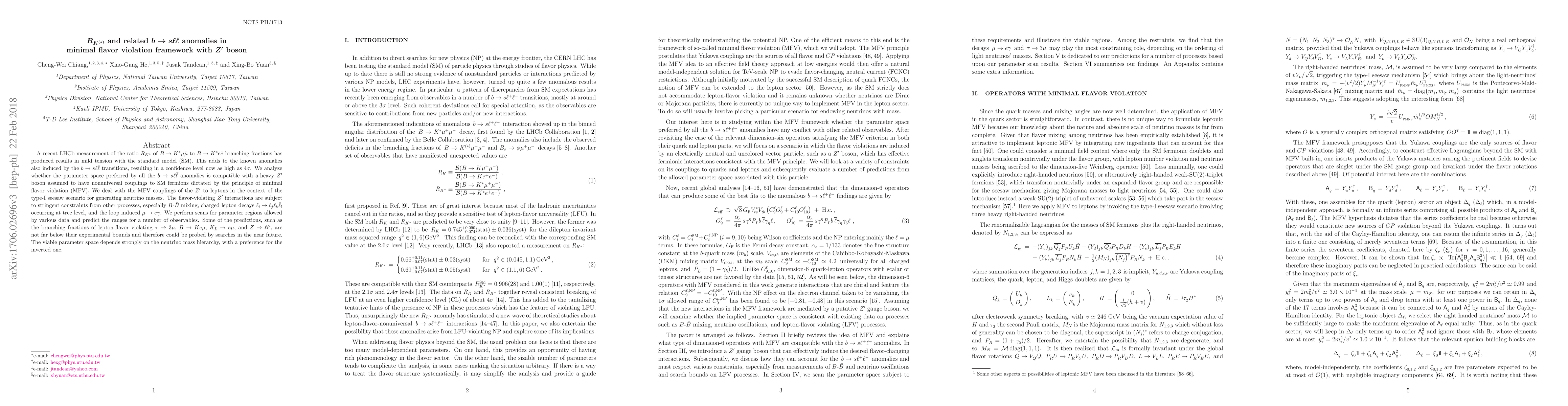 This paper investigates the compatibility of $b\to s\ell\bar\ell$ anomalies with a minimal flavor violation framework featuring a heavy $Z'$ boson, analyzing its nonuniversal couplings and their implications for various lepton-flavor violating processes. Predictions suggest several observables could soon be tested experimentally.