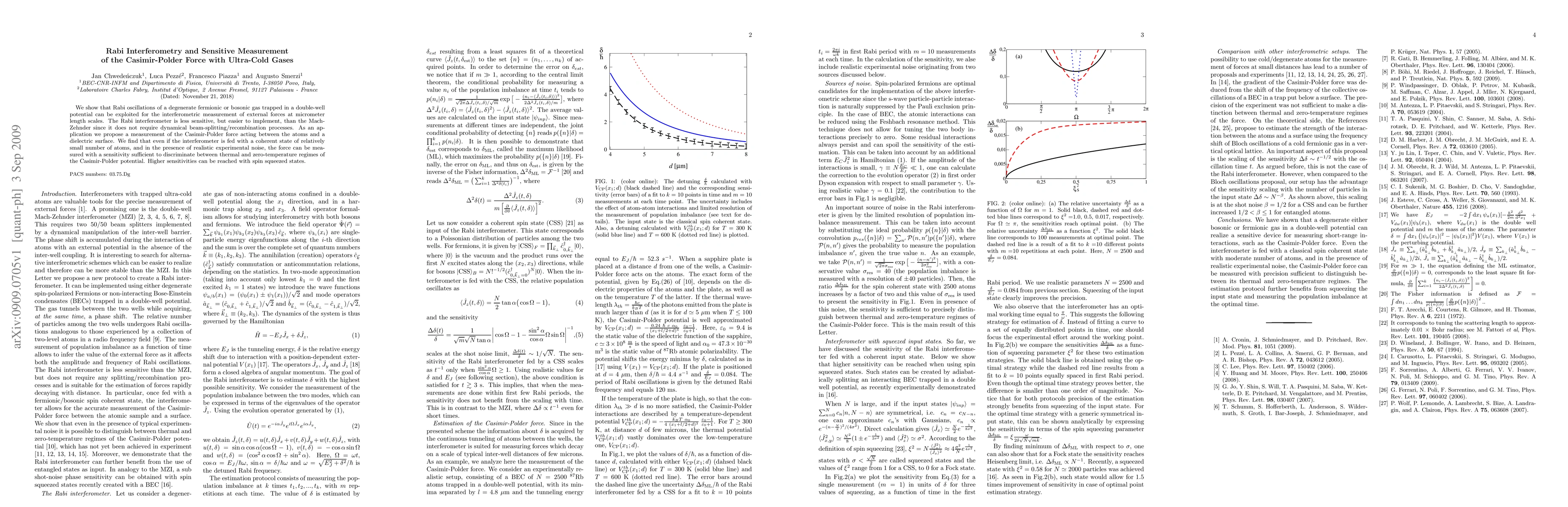 This paper proposes using Rabi oscillations in a double-well potential to measure external forces via a simpler Rabi interferometer, demonstrating its application for sensitive measurement of the Casimir-Polder force between ultra-cold gases and a dielectric surface, achieving sufficient sensitivity to distinguish between thermal and zero-temperature regimes.