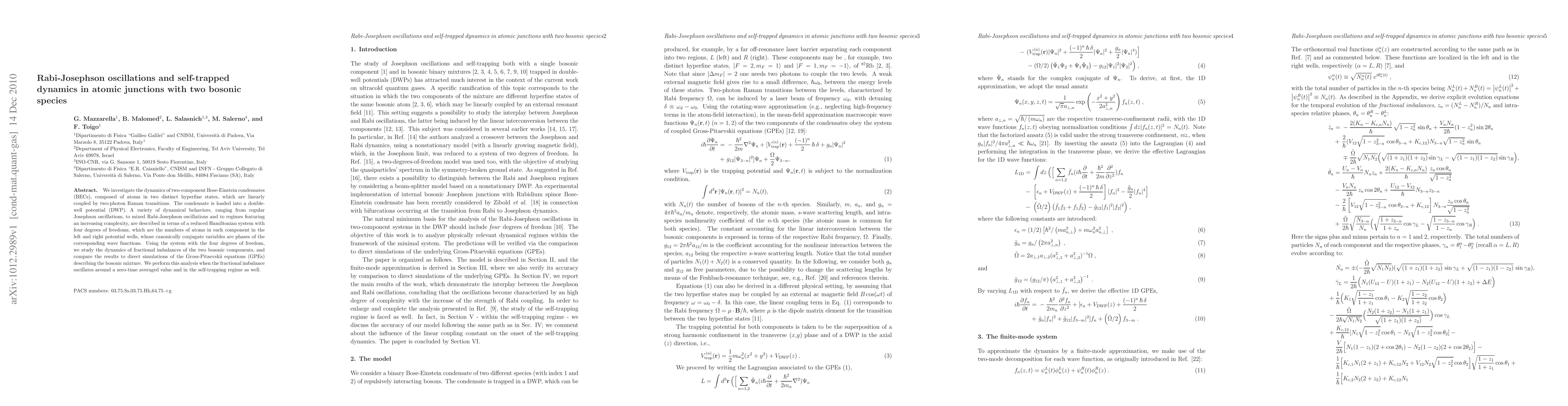 This paper explores the dynamics of two-component Bose-Einstein condensates in a double-well potential, focusing on Rabi-Josephson oscillations and self-trapped dynamics. It employs a reduced Hamiltonian to describe the system's four degrees of freedom and compares theoretical predictions with simulations of the Gross-Pitaevskii equations.