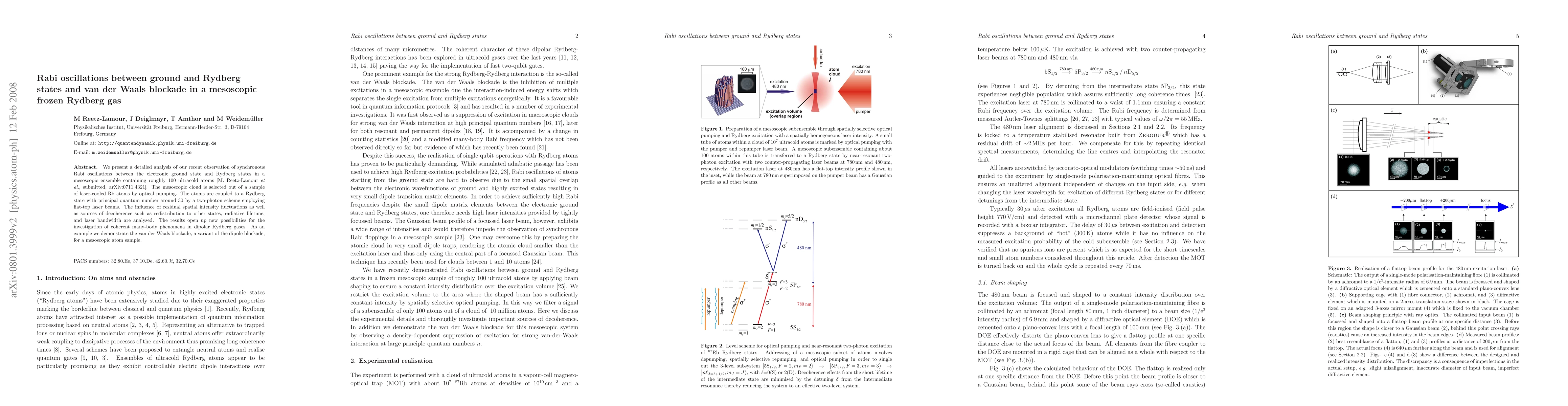 This paper details synchronous Rabi oscillations between ground and Rydberg states in a mesoscopic frozen Rydberg gas of ultracold Rb atoms, highlighting effects of spatial intensity fluctuations and decoherence sources. It also demonstrates the van der Waals blockade, showcasing coherent many-body phenomena in dipolar Rydberg gases.