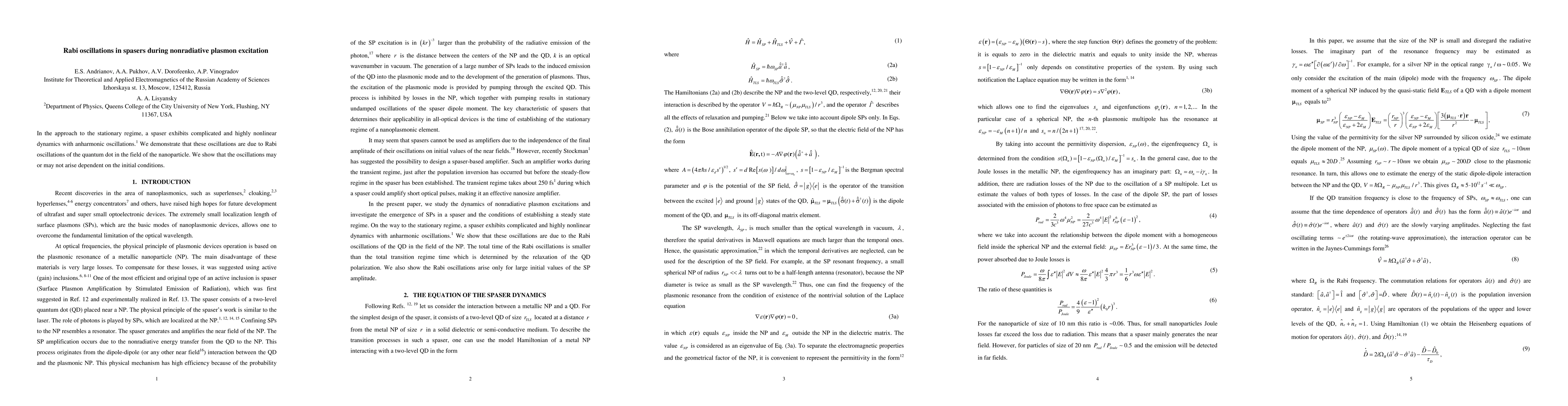 In the approach to the stationary regime, a spaser exhibits complicated and highly nonlinear dynamics with anharmonic oscillations.1 We demonstrate that these oscillations are due to Rabi oscillations of the quantum dot in the field of the nanoparticle. We show that the oscillations may or may not arise dependent on the initial conditions.