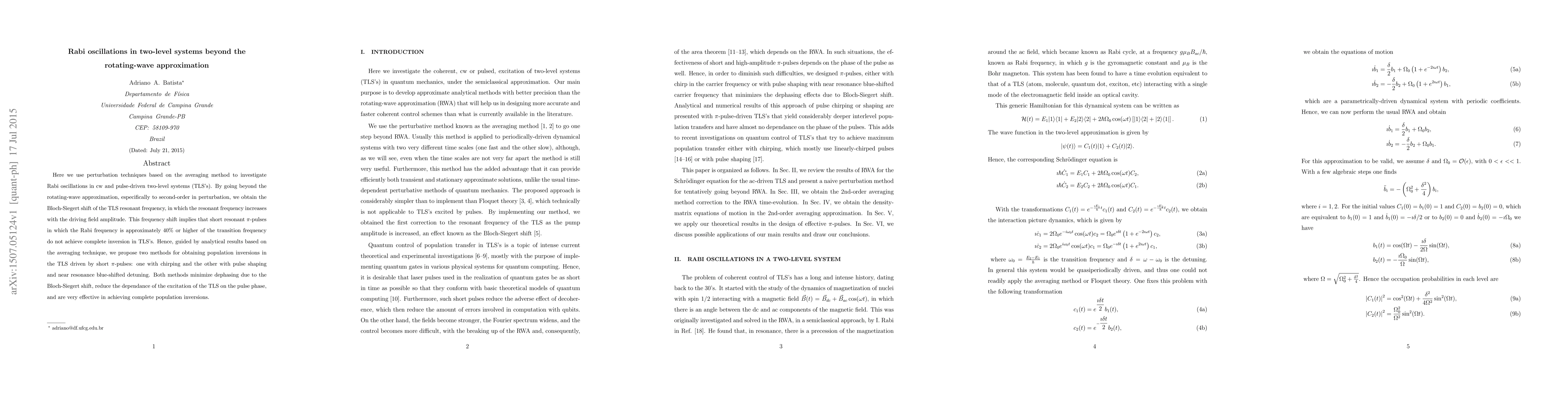This paper investigates Rabi oscillations in two-level systems beyond the rotating-wave approximation, revealing the Bloch-Siegert shift and proposing methods for achieving complete population inversions using chirped or shaped pulses. These methods effectively minimize dephasing and reduce pulse phase dependency.