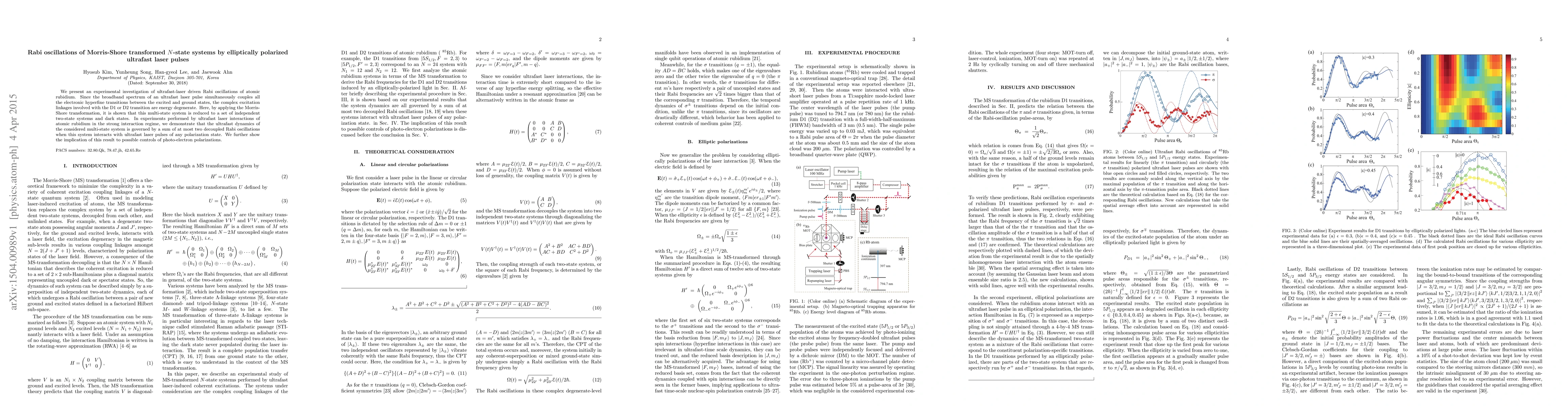This paper investigates ultrafast laser-driven Rabi oscillations in rubidium atoms, demonstrating that the Morris-Shore transformation simplifies the complex multi-state system into independent two-state systems and dark states. Experimental results show that the dynamics of the system are governed by at most two decoupled Rabi oscillations under ultrafast laser pulses, with implications for controlling photo-electron polarizations.