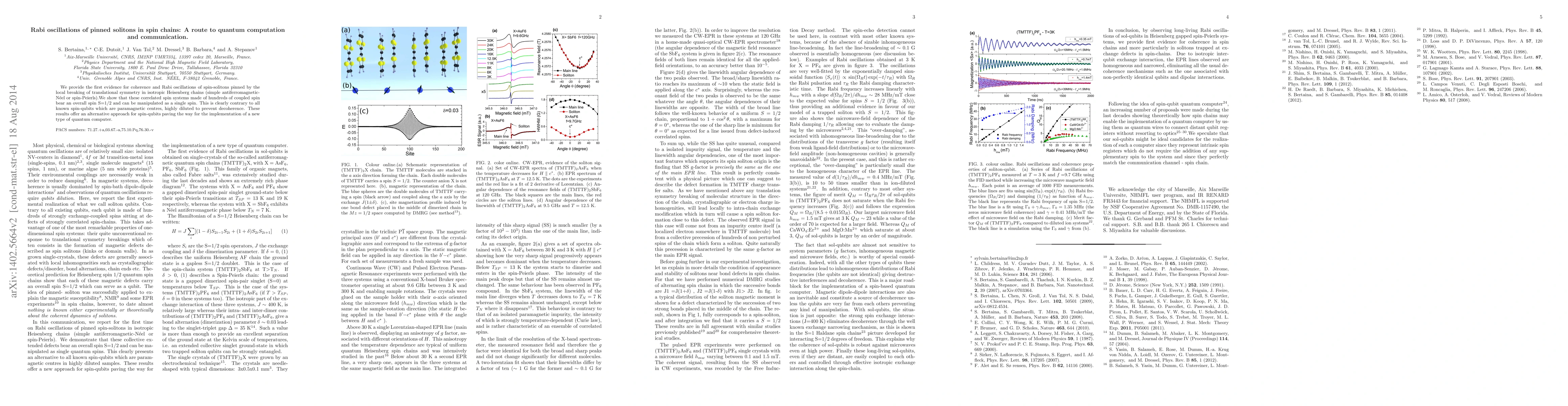 This paper presents evidence of coherence and Rabi oscillations in spin-solitons within isotropic Heisenberg chains, suggesting a novel method for quantum computation and communication. Unlike traditional paramagnetic spin-qubits, these solitons, composed of hundreds of coupled spins, exhibit collective behavior as a single spin S=1/2, potentially leading to a new quantum computing paradigm.