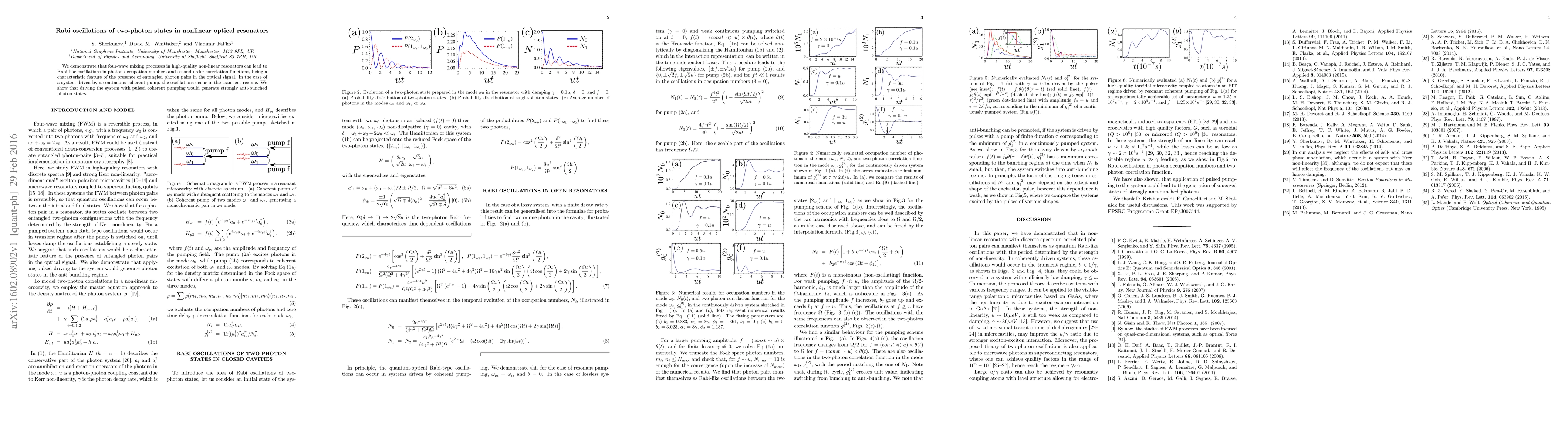 Researchers show that high-quality nonlinear optical resonators can exhibit Rabi oscillations in photon occupation numbers when driven by a continuous coherent pump, indicating the presence of entangled photon pairs. Pulsed coherent pumping generates strongly anti-bunched photon states.