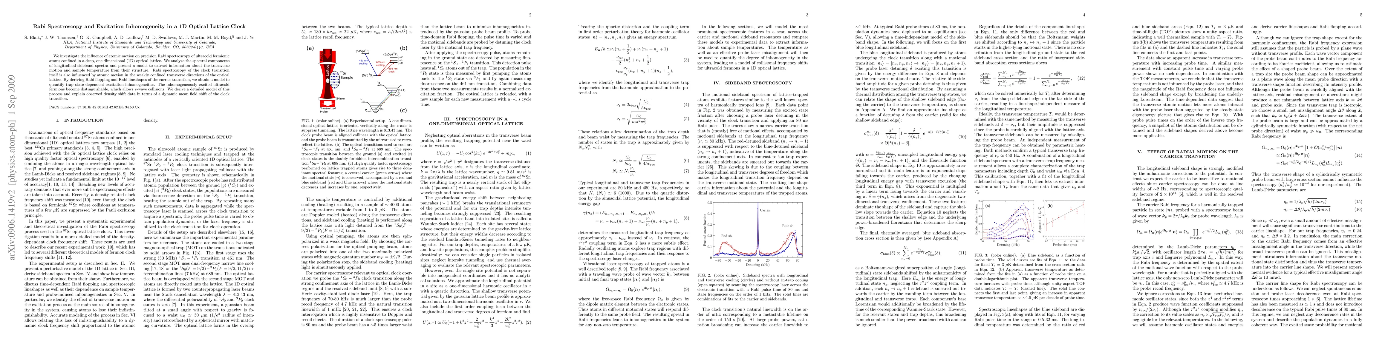 This paper investigates the impact of atomic motion on precision Rabi spectroscopy of ultracold fermions in a 1D optical lattice, revealing how transverse motion and temperature affect spectral components and trap state dependent excitation inhomogeneities, leading to distinguishable fermions and s-wave collisions.