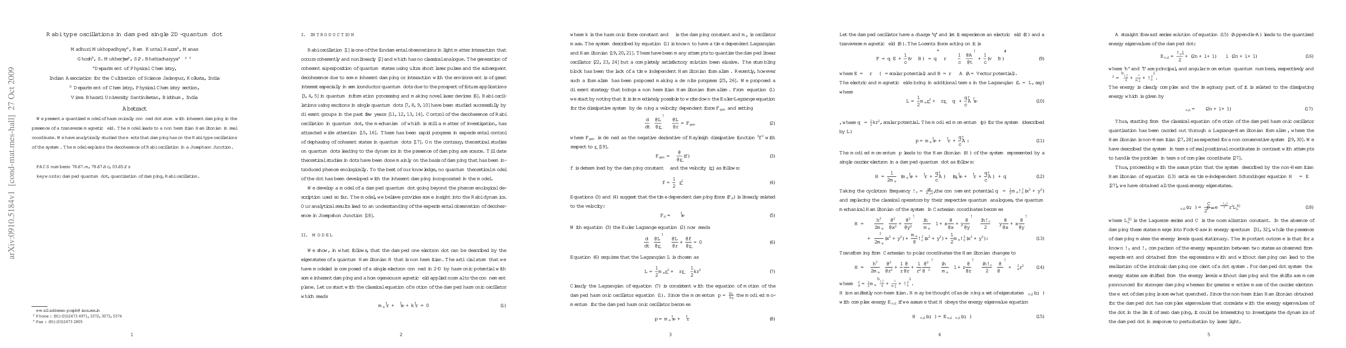 Researchers studied how damping affects Rabi oscillations in a 2D quantum dot with a magnetic field, finding that it leads to decoherence and explains similar phenomena in Josephson Junctions.