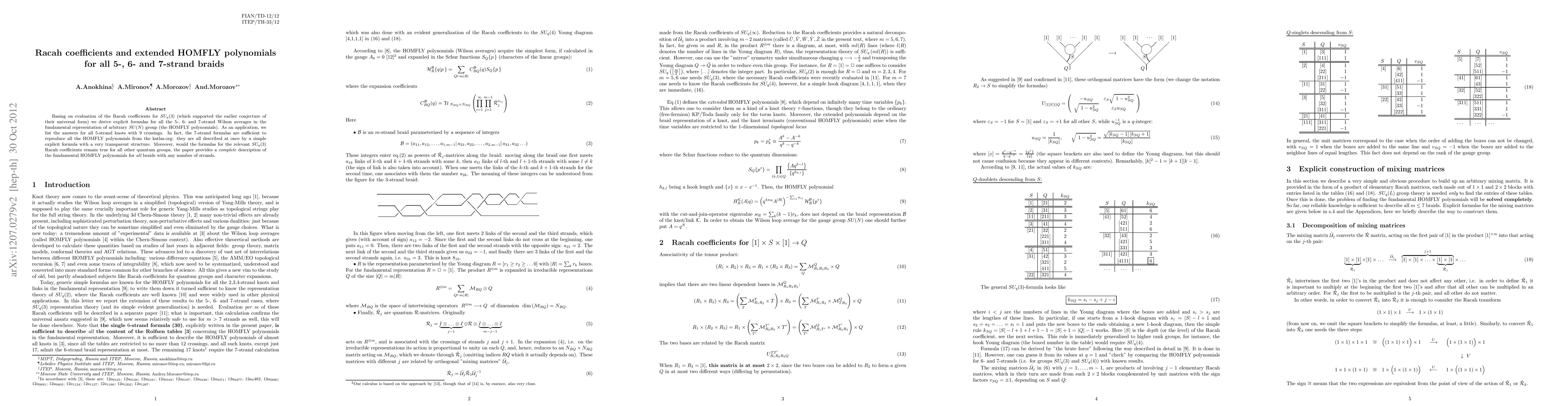 This paper derives explicit formulas for HOMFLY polynomials for 5-, 6-, and 7-strand braids using evaluated Racah coefficients for SU_q(3), confirming their universal form. The results provide a simple, transparent formula for all HOMFLY polynomials, applicable to any number of strands.