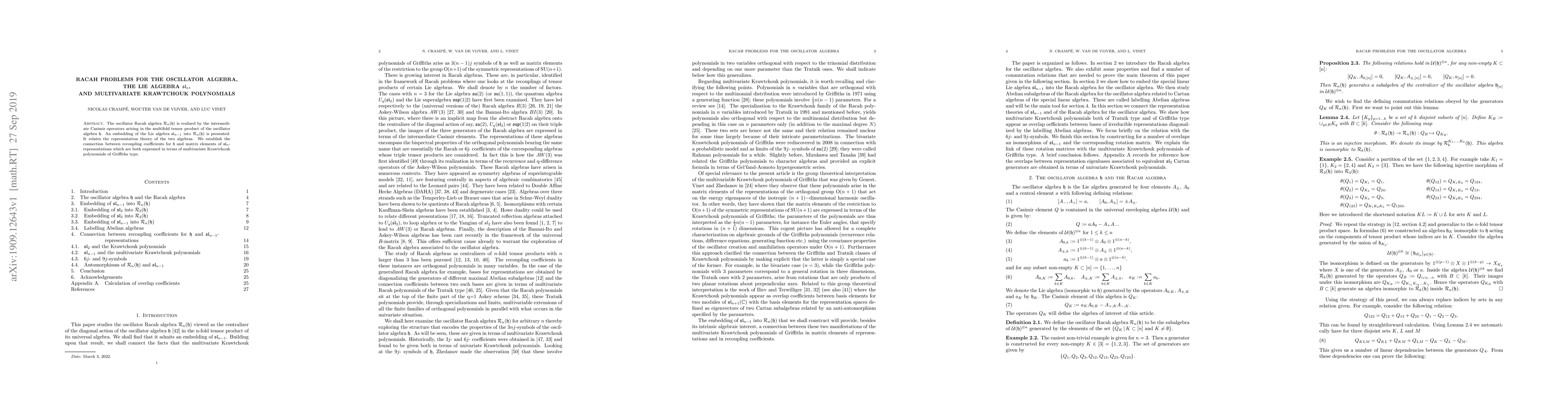This paper explores the oscillator Racah algebra $\mathcal{R}_n(\mathfrak{h})$ and its connection to the Lie algebra $\mathfrak{sl}_{n-1}$. It establishes a relationship between the representation theories of these algebras and uses multivariate Krawtchouk polynomials to express recoupling coefficients and matrix elements.