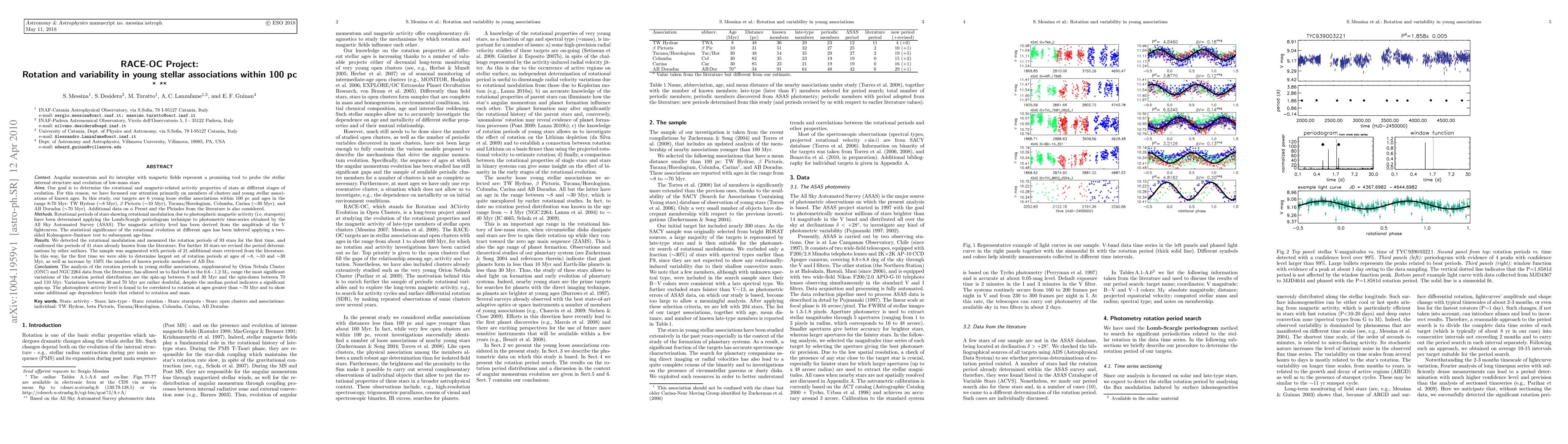 The RACE-OC Project investigates rotational and magnetic activity in young stellar associations within 100 pc, determining rotation periods for 93 stars and confirming or revising periods for 51 others. The study reveals significant spin-up between 9 and 30 Myr and spin-down between 70 and 110 Myr, with minimal variation between 30 and 70 Myr.