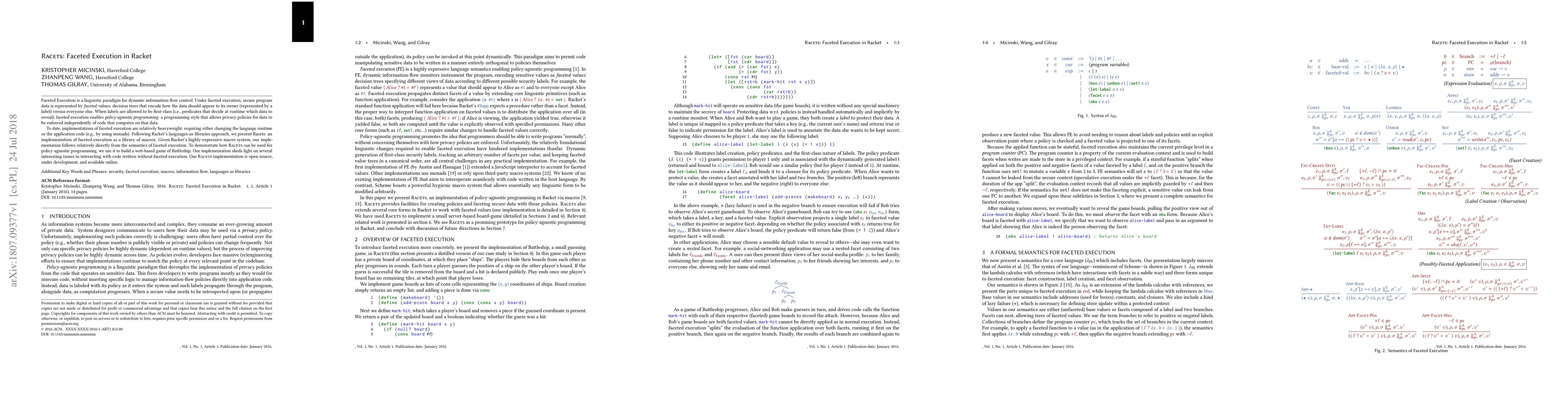 Racets is a Racket library implementing faceted execution, a dynamic information-flow control paradigm that allows privacy policies to be enforced independently of data-processing code. The library uses Racket's macro system to achieve lightweight, policy-agnostic programming, demonstrated through a web-based game of Battleship.