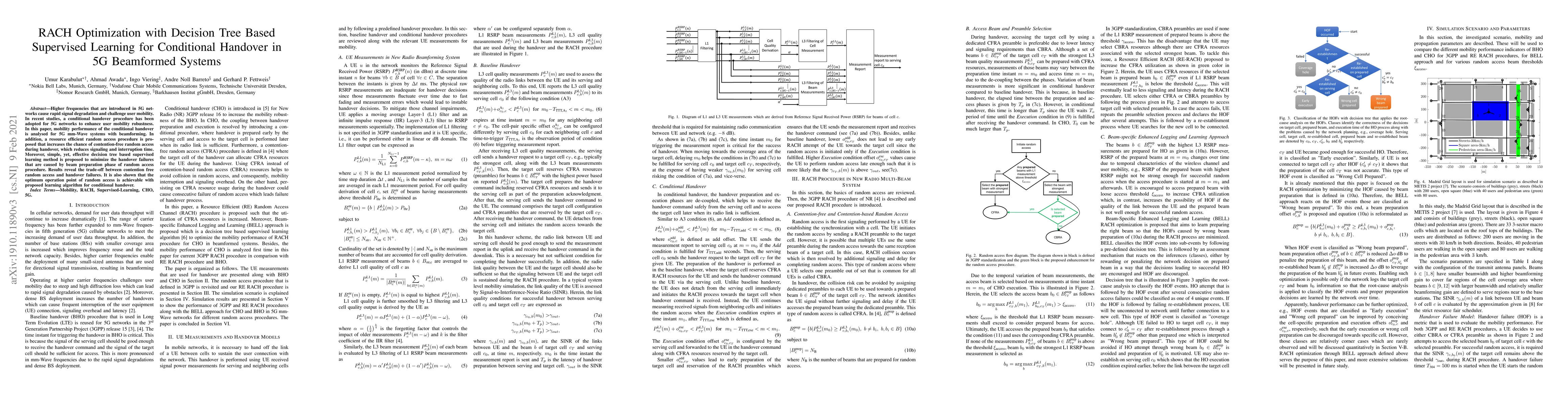 This paper proposes a decision tree based supervised learning method to optimize the random access channel (RACH) in 5G beamformed systems, enhancing conditional handover performance. The approach aims to minimize handover failures during the beam preparation phase, achieving a balance between contention-free access and reduced interruption time.