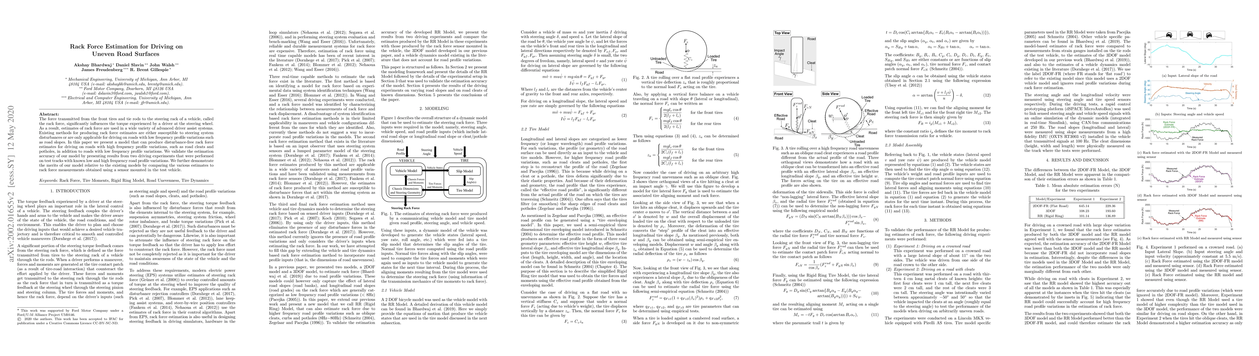 A new model is presented to estimate rack force accurately for driving on roads with high frequency profile variations, including road cleats and potholes, surpassing existing methods.
