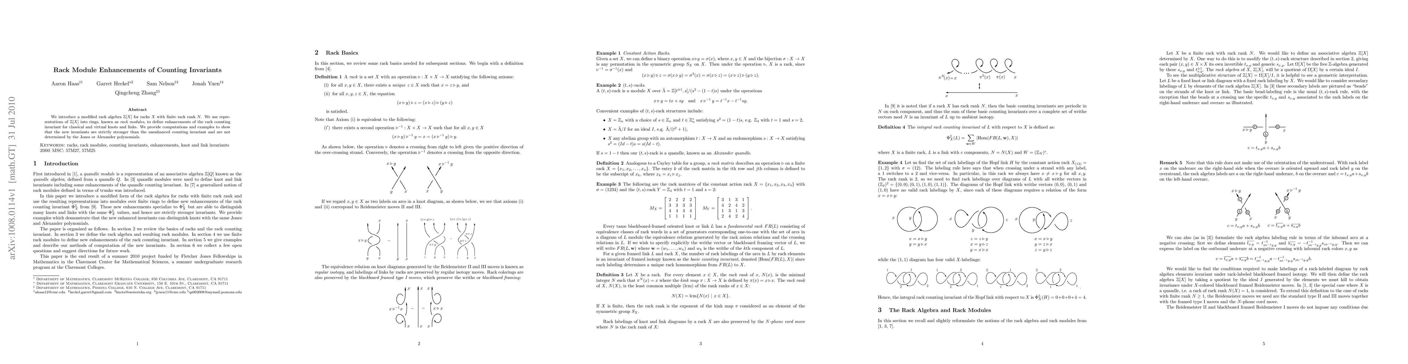 This paper proposes a modified rack algebra and its representations, termed rack modules, to enhance the rack counting invariant. The new invariants are shown to be more powerful than the original invariant and independent of the Jones or Alexander polynomials.