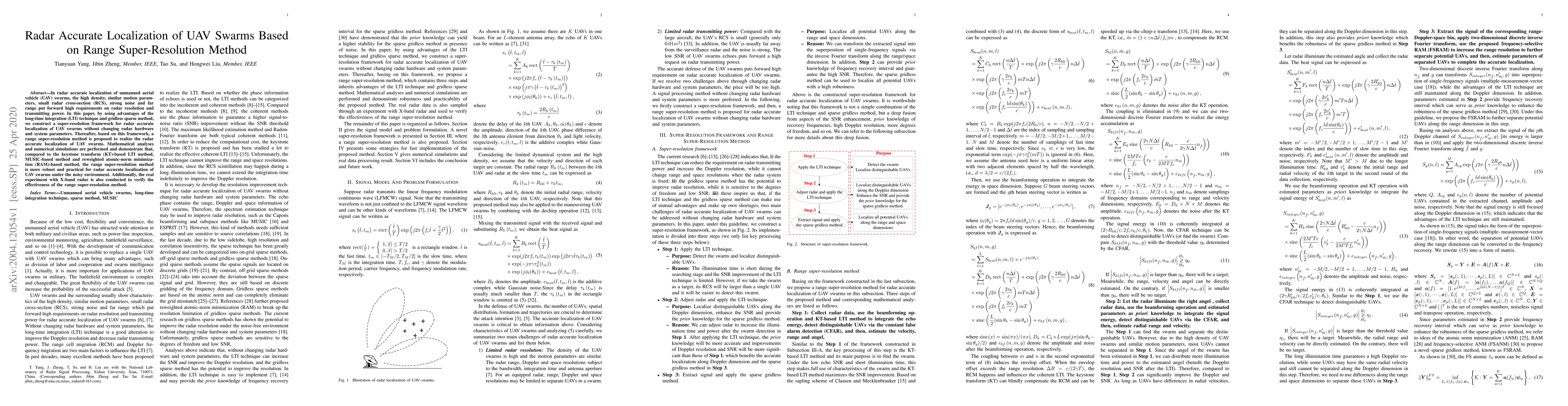 This paper proposes a range super-resolution method for radar accurate localization of UAV swarms using long-time integration and gridless sparse techniques, demonstrating superior robustness and practicality compared to existing methods through mathematical analysis, simulations, and real-world experiments.