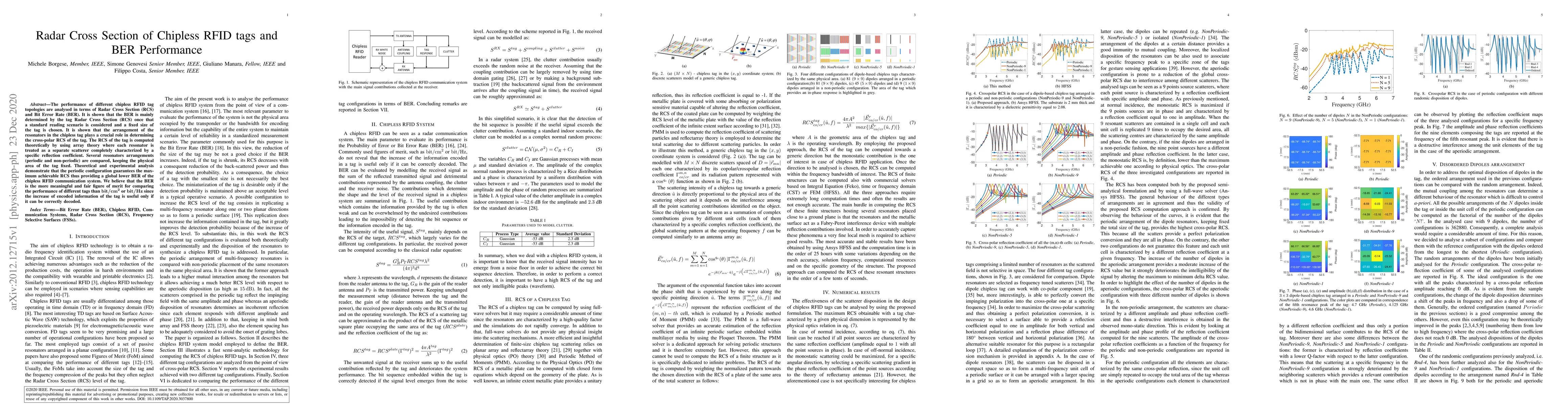 The performance of different chipless RFID tag topologies are analysed in terms of Radar Cross Section (RCS) and Bit Error Rate (BER). It is shown that the BER is mainly determined by the tag Radar Cross Section (RCS) once that a standard reading scenario is considered and a fixed size of the tag is chosen. It is shown that the arrangement of the resonators in the chipless tag plays a crucial role in determining the cross-polar RCS of the tag. The RCS of the tag is computed theoretically by using array theory where each resonator is treated as a separate scatterer completely characterized by a specific reflection coefficient. Several resonators arrangements (periodic and non-periodic) are compared, keeping the physical area of the tag fixed. Theoretical and experimental analysis demonstrate that the periodic configuration guarantees the maximum achievable RCS thus providing a global lower BER of the chipless RFID communication system. We believe that the BER is the more meaningful and fair figure of merit for comparing the performance of different tags than bit/cm2 or bit/Hz since the increase of encoded information of the tag is useful only if it can be correctly decoded.