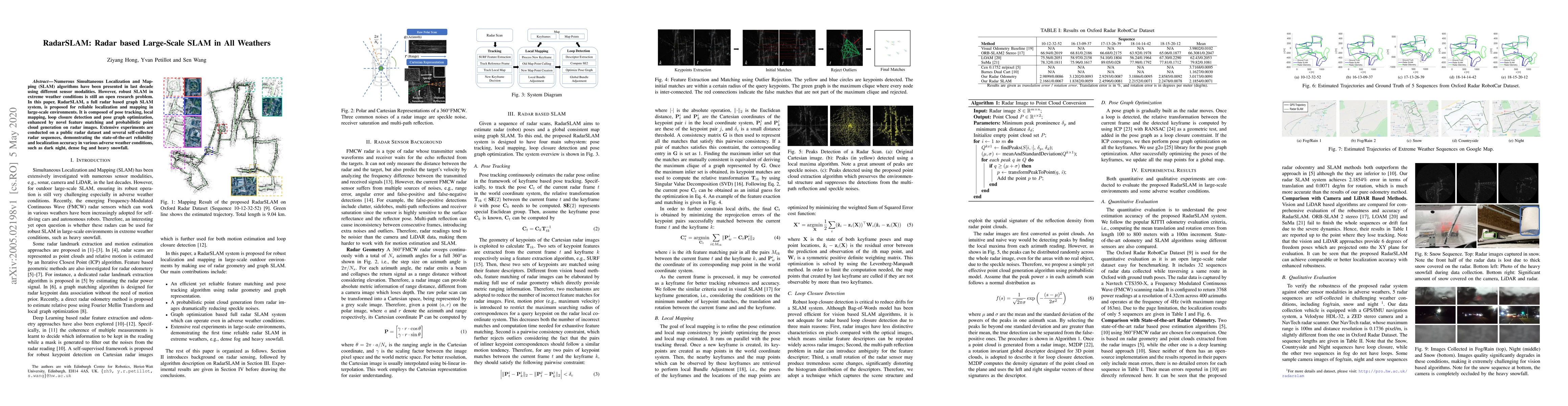 RadarSLAM is a radar-based graph SLAM system designed for reliable localization and mapping in large-scale environments under all weather conditions, featuring pose tracking, local mapping, loop closure detection, and pose graph optimization. Experiments demonstrate its superior performance in adverse weather scenarios, achieving state-of-the-art reliability and accuracy.