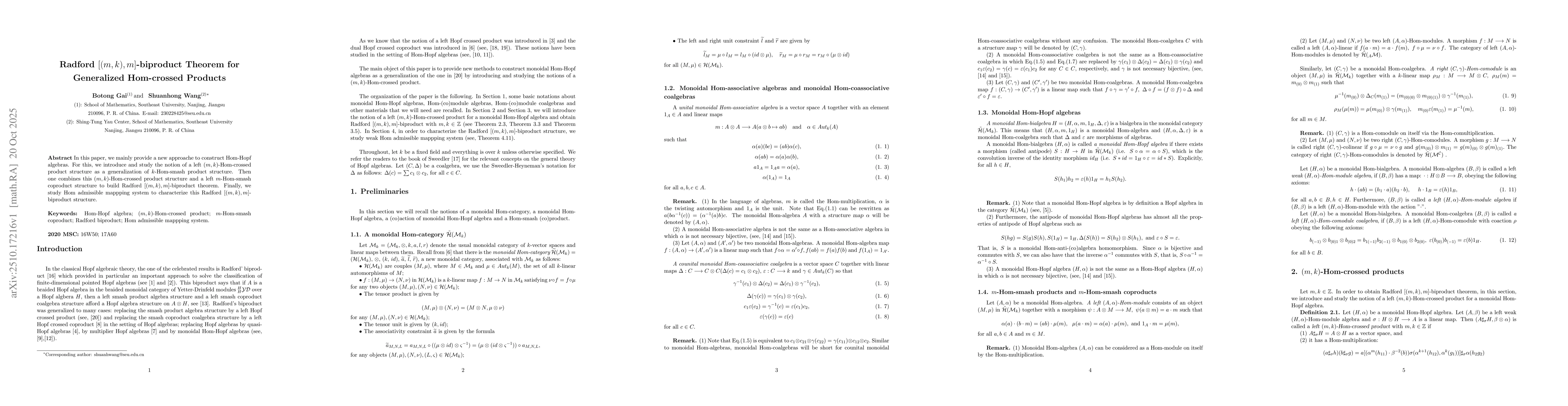 In this paper, we mainly provide a new approache to construct Hom-Hopf algebras. For this, we introduce and study the notion of a left $(m,k)$-Hom-crossed product structure as a generalization of $k$-Hom-smash product structure. Then one combines this $(m,k)$-Hom-crossed product structure and a left $m$-Hom-smash coproduct structure to build Radford $[(m,k),m]$-biproduct theorem. Finally, we study Hom admissible mappping system to characterize this Radford $[(m,k),m]$-biproduct structure.