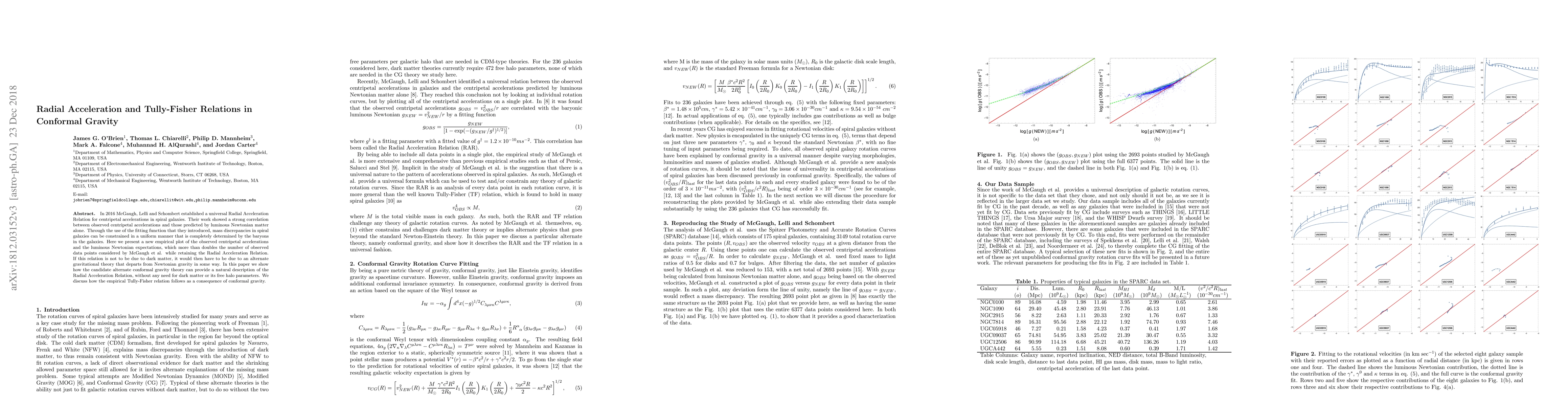 This paper extends the Radial Acceleration Relation established by McGaugh et al. to a larger dataset, showing that the observed centripetal accelerations in spiral galaxies align closely with predictions based on luminous Newtonian matter. It proposes that conformal gravity, an alternative to dark matter, can naturally explain this relation without invoking dark matter, and also derives the Tully-Fisher relation from this framework.