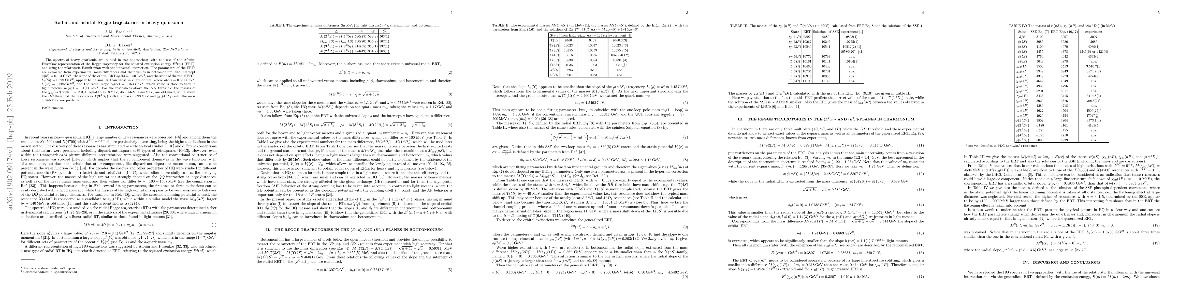 The spectra of heavy quarkonia are studied in two approaches: with the use of the Afonin-Pusenkov representation of the Regge trajectory for the squared excitation energy $E^2(nl)$ (ERT), and using the relativistic Hamiltonian with the universal interaction. The parameters of the ERTs are extracted from experimental mass differences and their values in bottomonium: the intercept $a(b\bar b)=0.131\,$GeV$^2$, the slope of the orbital ERT $b_l(b\bar b) =0.50$\,GeV$^2$, and the slope of the radial ERT, $b_n(b\bar b)=0.724$\,GeV$^2$, appear to be smaller than those in charmonium, where $a(c\bar c)=0.381$\,GeV$^2$, $b_l(c\bar c)=0.686$\,GeV$^2$, and the radial slope $b_n(c\bar c)= 1.074$\,GeV$^2$, which value is close to that in light mesons, $b_n(q\bar q)=1.1(1)$\,GeV$^2$. For the resonances above the $D\bar D$ threshold the masses of the $\chi_{c0}(nP)$ with $n=2,3,4$, equal to 4218\,MeV, 4503\,MeV, 4754\,MeV, are obtained, while above the $B\bar B$ threshold the resonances $\Upsilon(3\,^3D_1)$ with the mass 10693\,MeV and $\chi_{b1}(4\,^3P_1)$ with the mass 10756\,MeV are predicted.