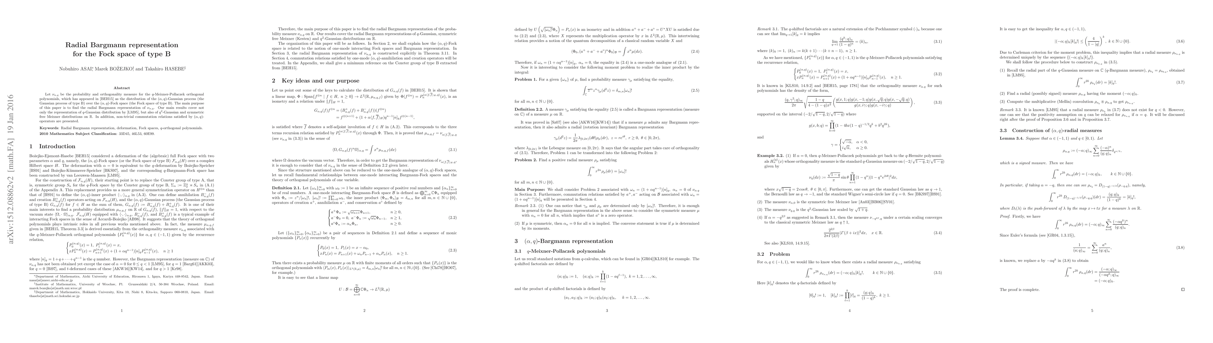 This paper finds a radial Bargmann representation for the probability measure of type B, covering q-Gaussian distributions, q^2-Gaussian distributions, and symmetric free Meixner distributions on R, with implications for non-trivial commutation relations.