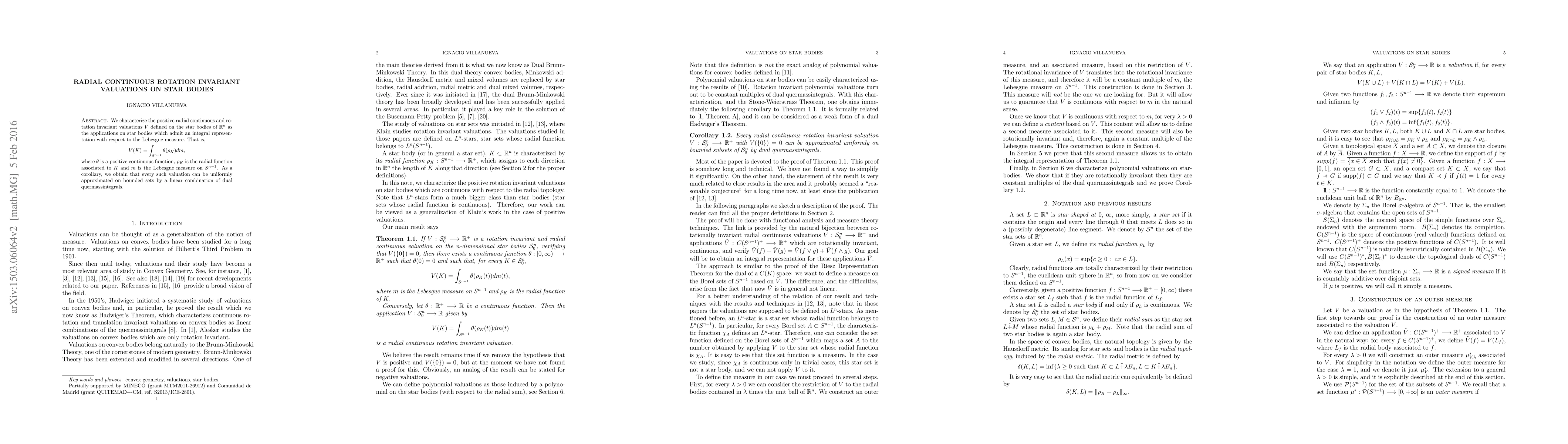 This paper characterizes positive radial continuous and rotation invariant valuations on star bodies in $\mathbb{R}^n$ as integral representations with respect to the Lebesgue measure. It concludes that such valuations can be uniformly approximated by linear combinations of dual quermassintegrals on bounded sets.